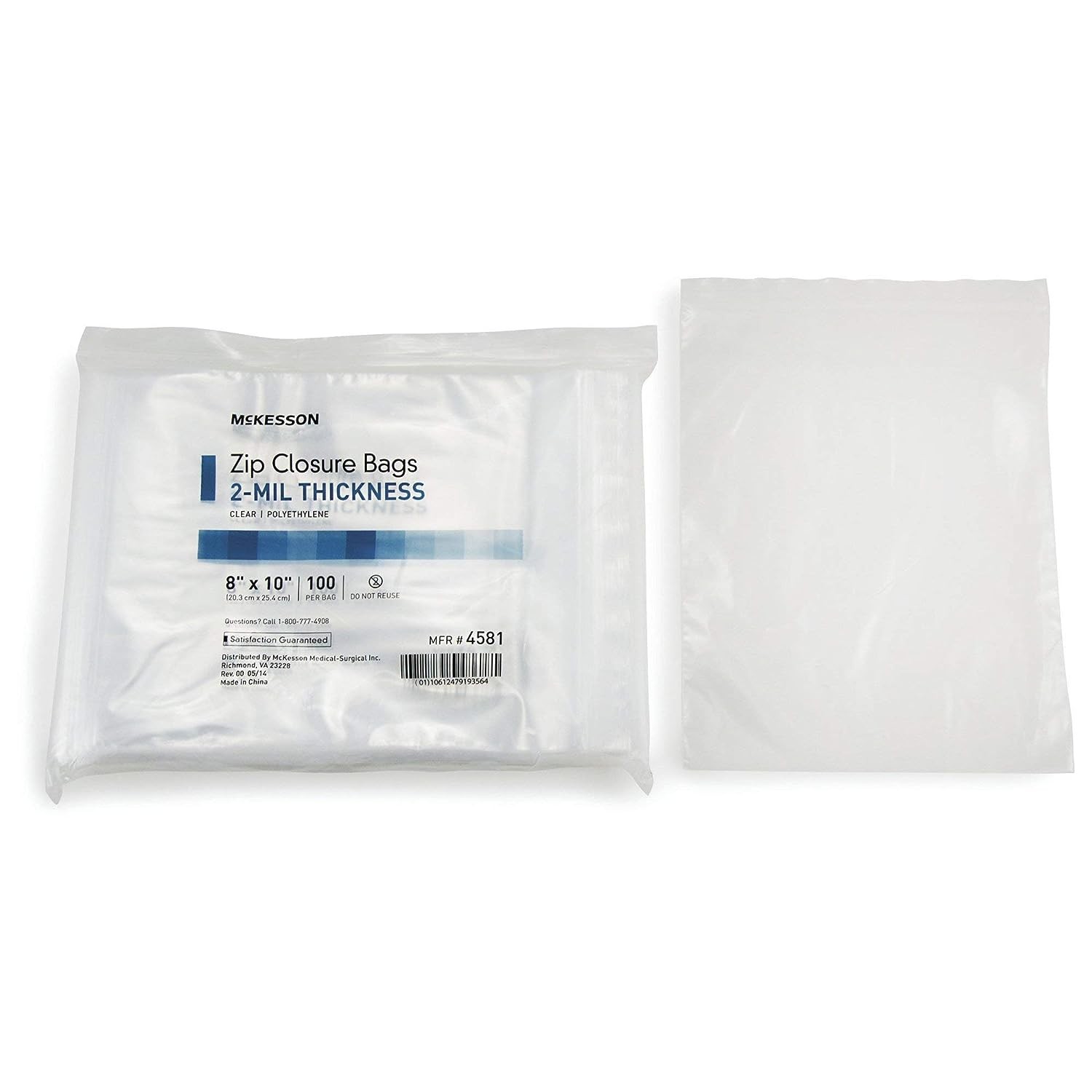 McKesson Zip Closure Bags, 2 mil Thickness - Polyethylene, Reclosable - Clear, 8 in x 10 in, 100 Count, 30 Packs, 3000 Total