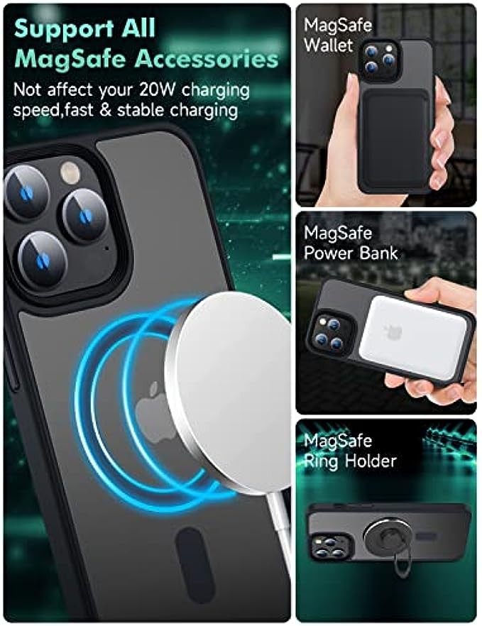[Super Magnetic Attraction] Particularly designed for iPhone 13 Pro Max, the phone case is compatible with Magsafe chargers and other Qi Wireless chargers without signal influence. Built-in strong magnet, the iPhone 13 Pro Max case will not fall off no matter how it rotates with super adsorption capacity. The perfectly aligned magnetic attraction makes wireless charging faster and more stable.