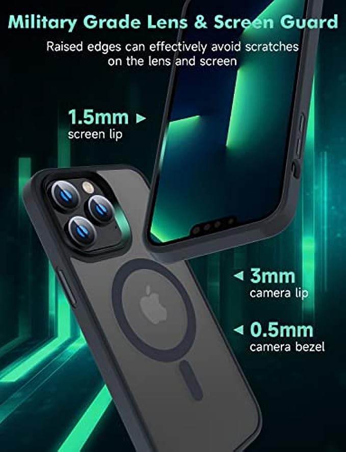 [Screen & Camera Guard] The MGNAOOI shockproof compatible for iPhone 13 Pro Max Case provides 3 mm Camera Lips and 1.5 mm Screen Lips, which help prevent your iPhone 13 Pro Max from rubbing against surfaces that leave permanent scratch marks.
