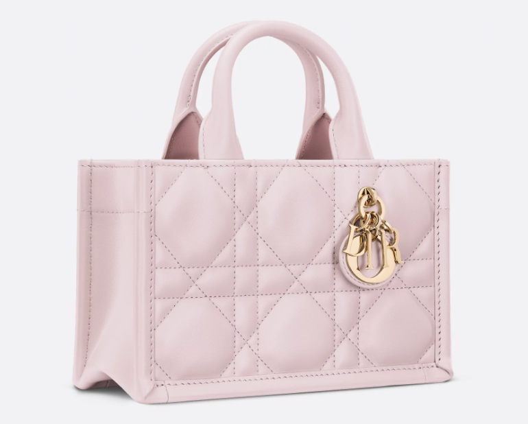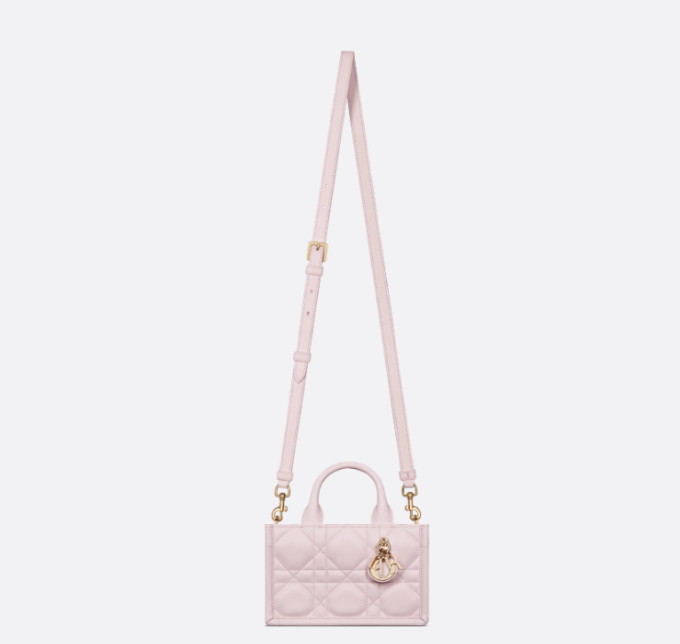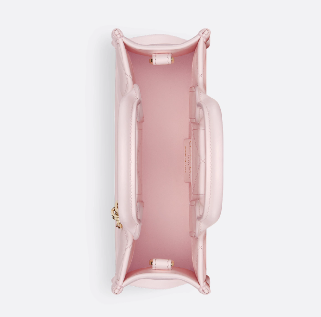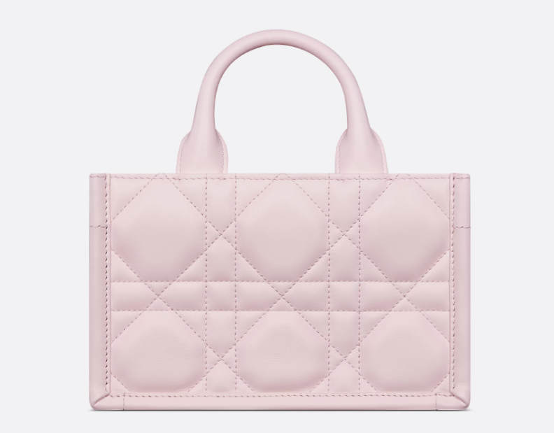 The Dior Book Tote is a House classic and original design by Maria Grazia Chiuri, Creative Director of Christian Dior. Constructed in blush pink calfskin, it is embellished with hallmark Macrocannage topstitching and accented by pale gold-finish metal D.I.O.R. charms adorning one of the top handles. Exemplifying House savoir-faire, the miniature style features an adjustable and removable strap that allows it to be carried by hand, worn over the shoulder or crossbody.
