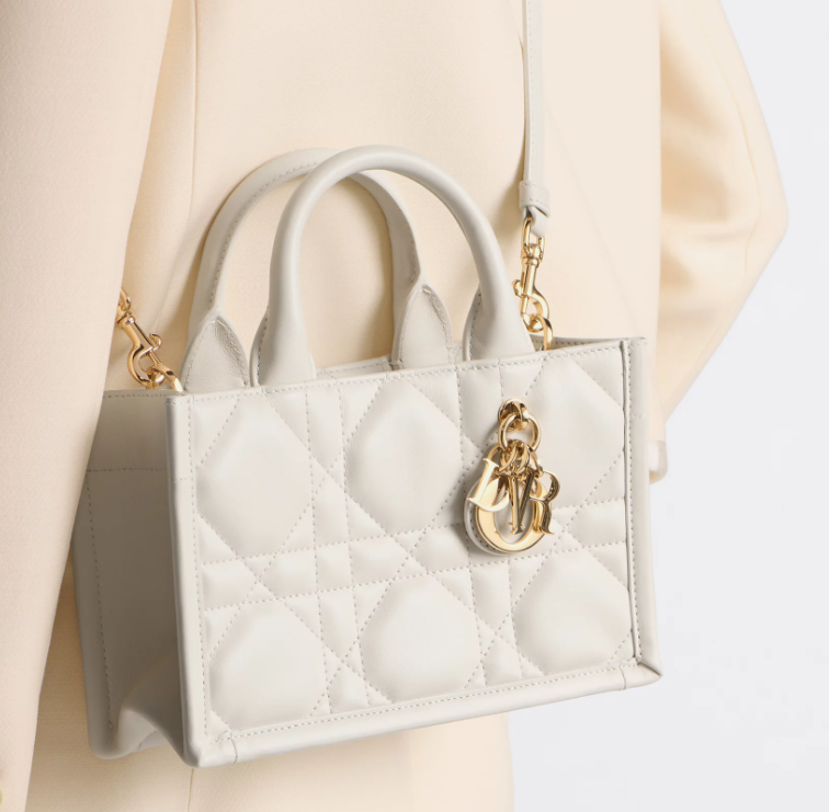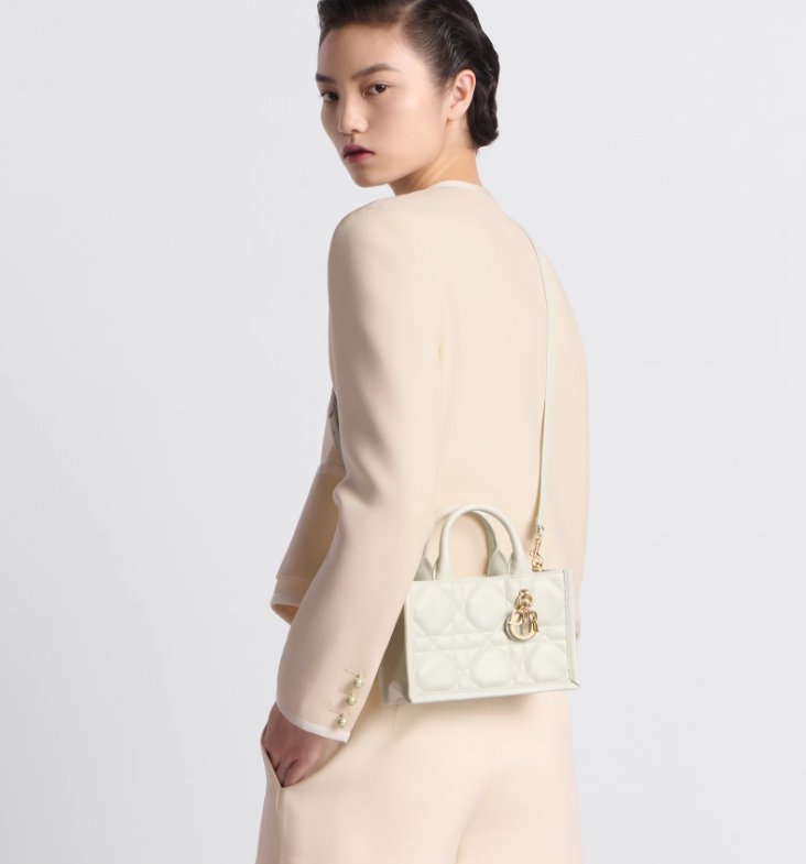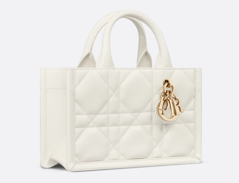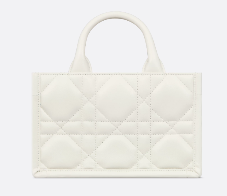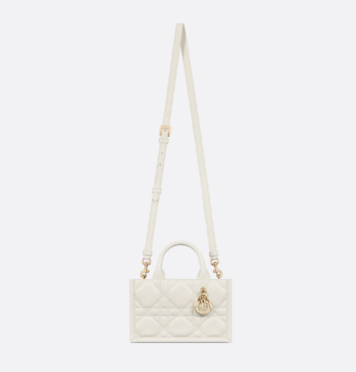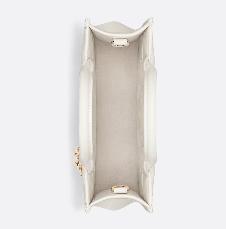 The Dior Book Tote is a House classic and original design by Maria Grazia Chiuri, Creative Director of Christian Dior. Constructed in latte calfskin, it is embellished with hallmark Macrocannage topstitching and accented by pale gold-finish metal D.I.O.R. charms adorning one of the top handles. Exemplifying House savoir-faire, the miniature style features an adjustable and removable strap that allows it to be carried by hand, worn over the shoulder or crossbody.