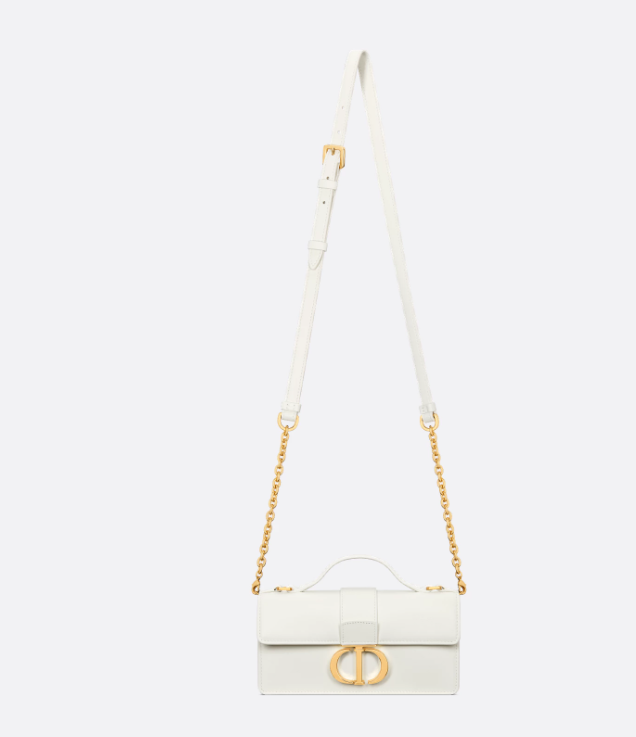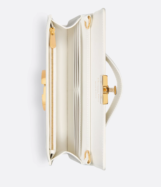 The Miss Montaigne mini bag is a practical and elegant style. Crafted in latte smooth calfskin, it features a flap embellished with an antique gold-finish metal CD twist clasp inspired by the seal of a Christian Dior perfume bottle, revealing a compartment to hold all the essentials. Equipped with a top handle and adjustable chain strap with a leather insert, the bag can be comfortably carried by hand, worn over the shoulder or crossbody as an ideal daily companion.