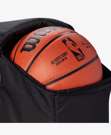 Protect your Wilson NBA Authentic Basketball with the Wilson Authentic Backpack, made with 100% polyester shell fabric and finished with a metal Wilson logo. This bag features a top zipper closure for quick access to all of your game-time items. The coated fabric on the bottom of the bag provided an added layer of protection to keep your ball safe. Carry your ball comfortably with adjustable padded backpack straps and the spacious main compartment that fits a standard size basketball. Store smaller items in the interior zipper pocket and keep water handy with two external mesh water bottle pockets.