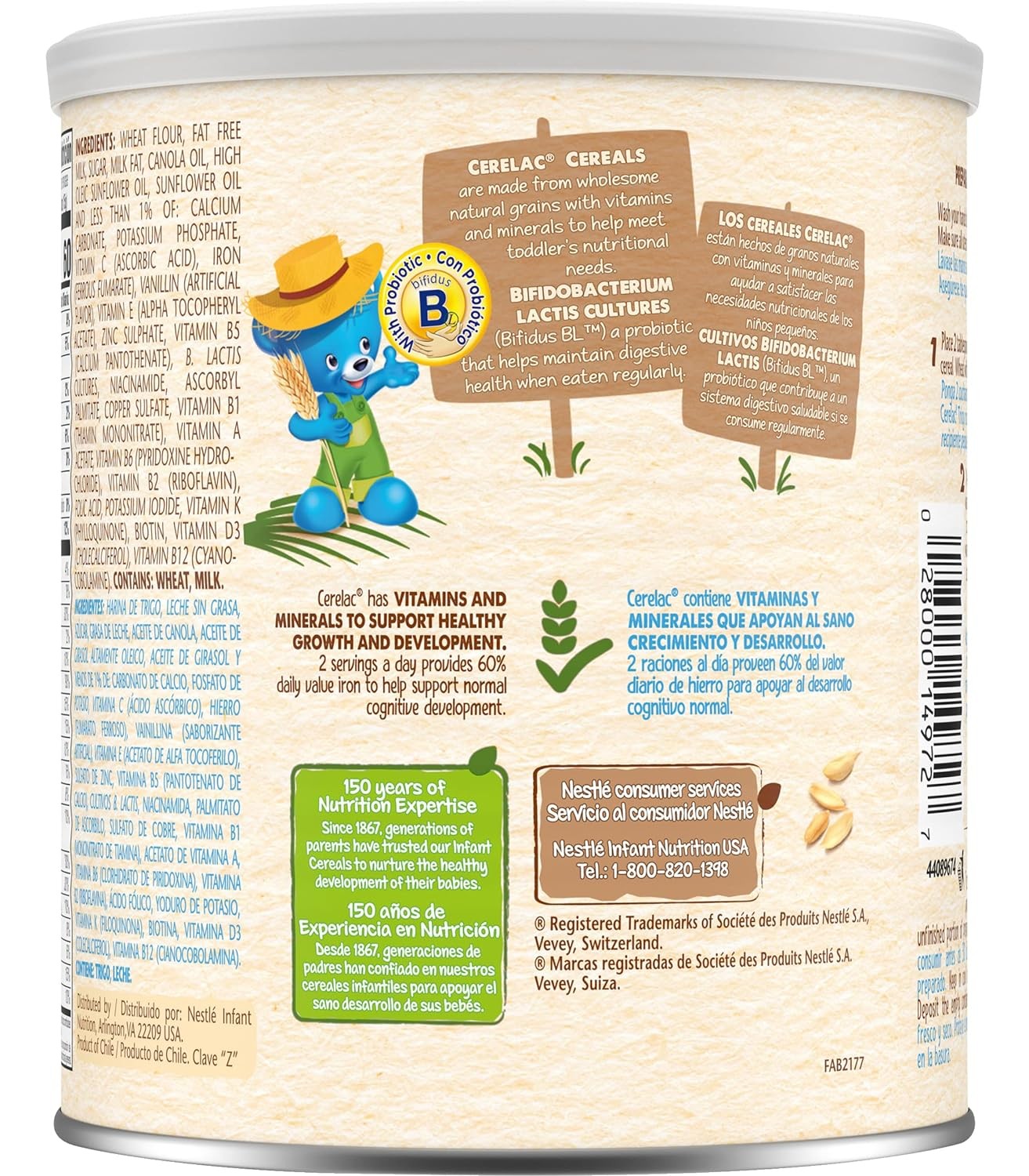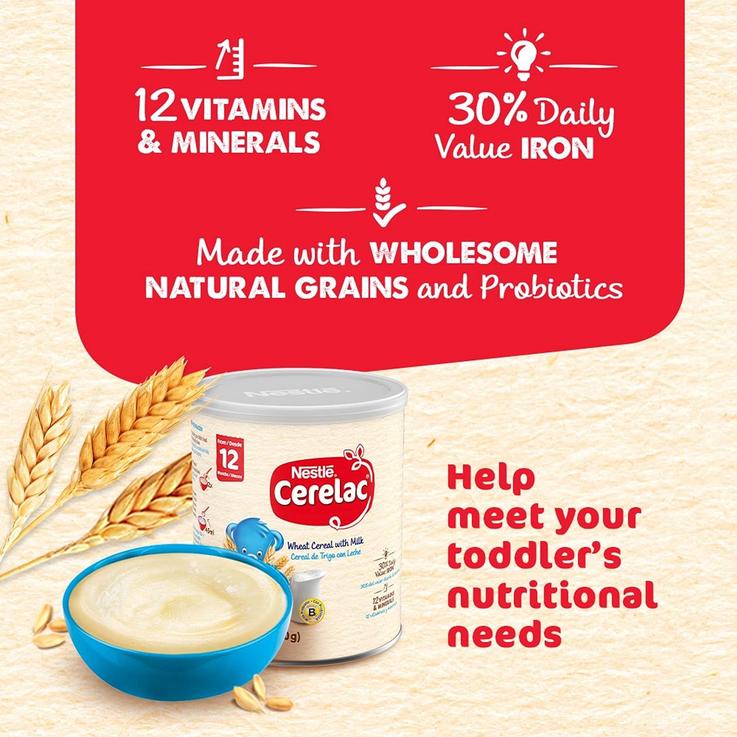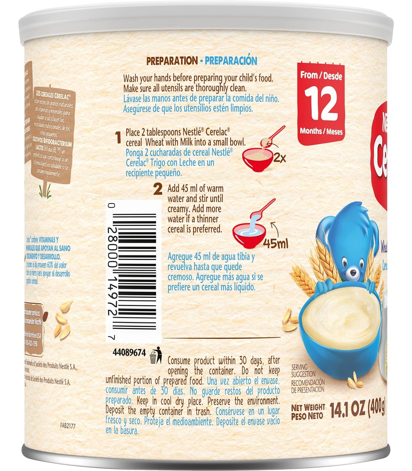 Nestle Cerelac Wheat Cereal with Milk, Made for Toddlers 12 Months, 14.1-Ounce Canister (Pack of 6)