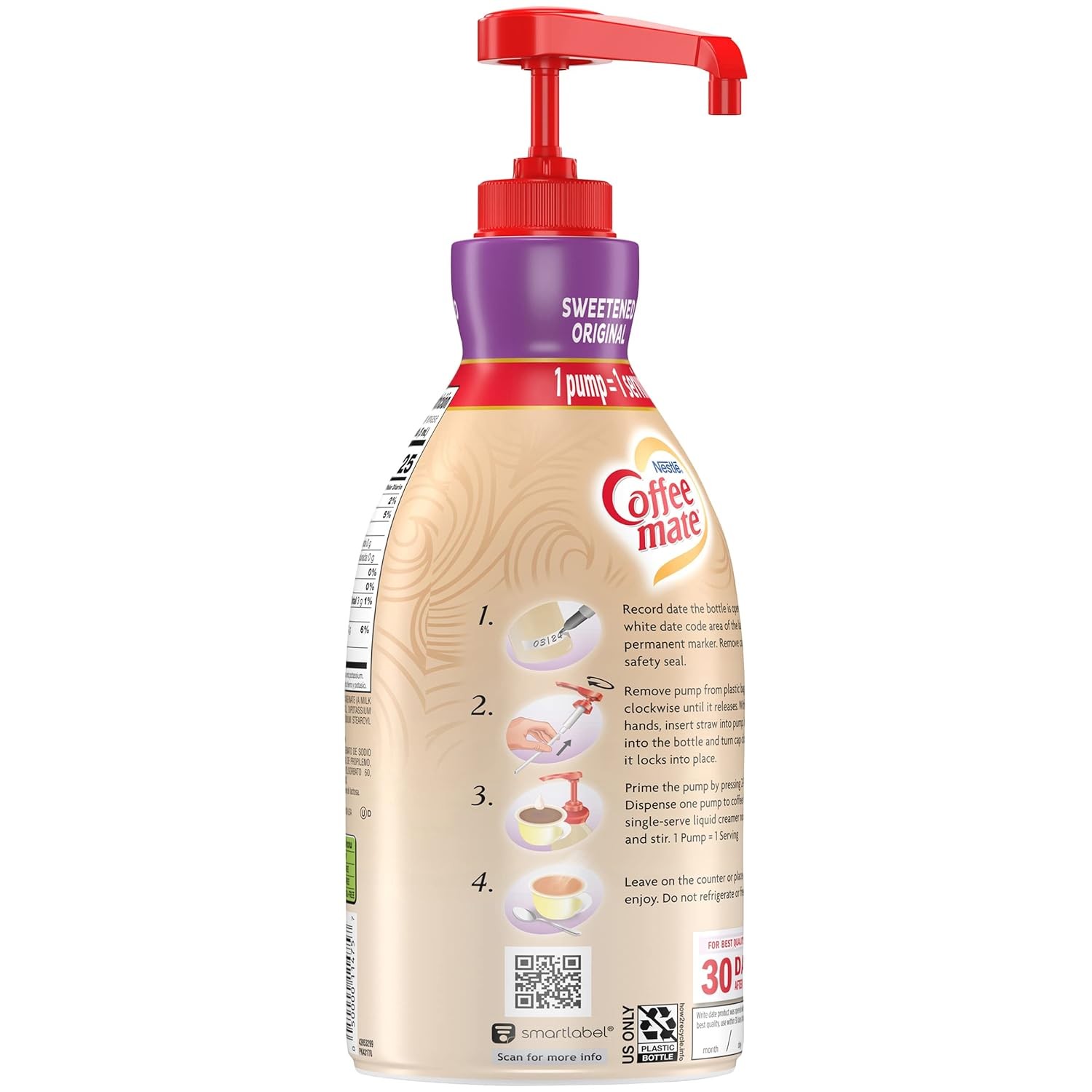 Non-Dairy Coffee Creamer: Nestle Coffee mate Sweetened Original Liquid Concentrate Pump Bottle adds a rich, velvety smooth, classic creamer flavor to your cup of coffee