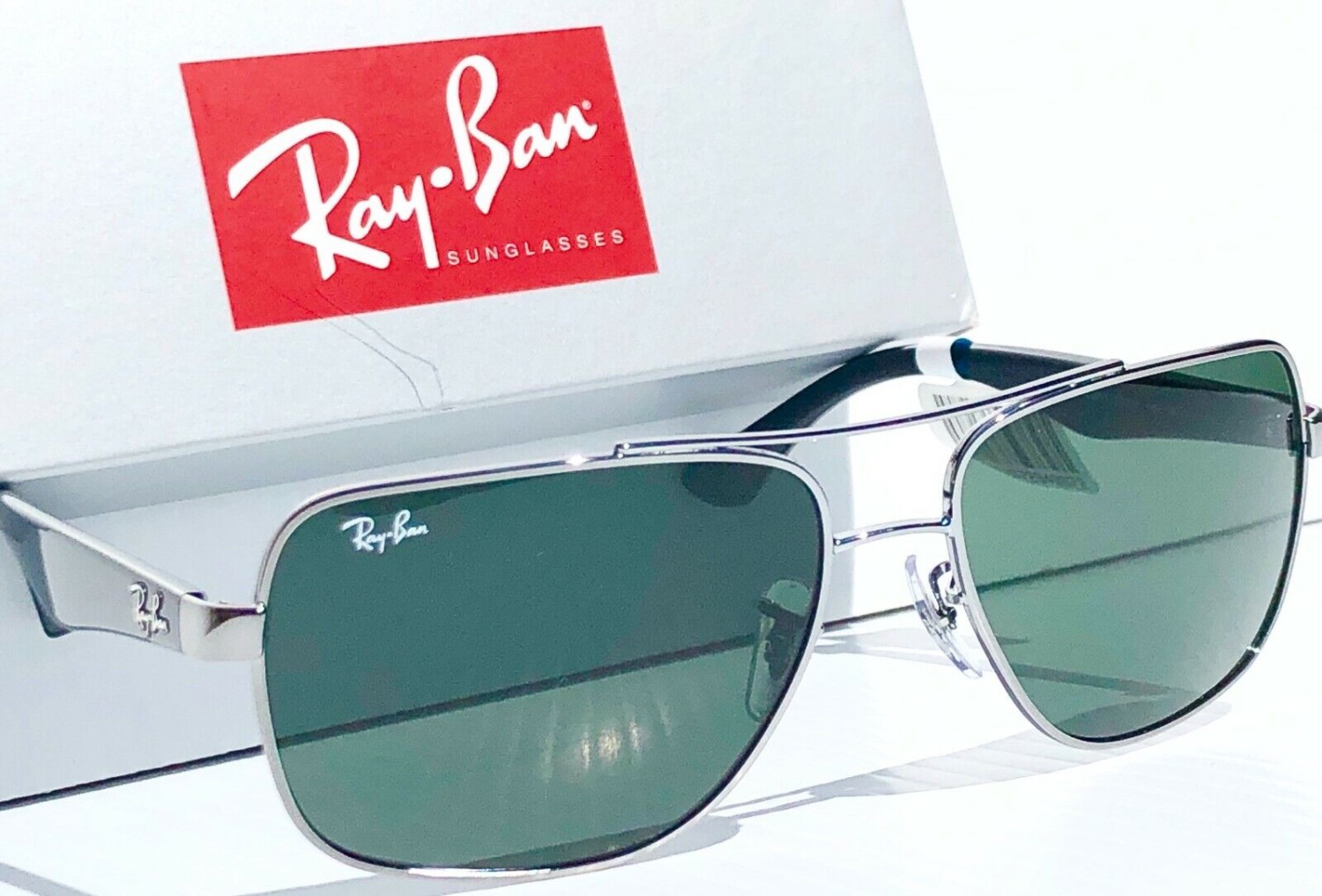 NEW Ray Ban Chrome 60mm AVIATOR Squared G-15 Green Grey Sunglass RB 3483 004/71