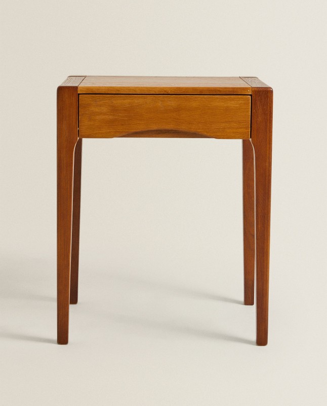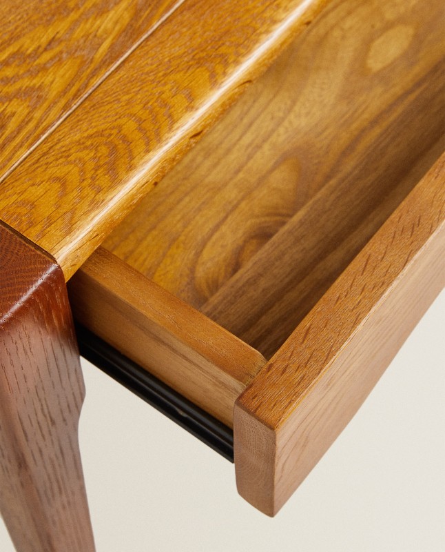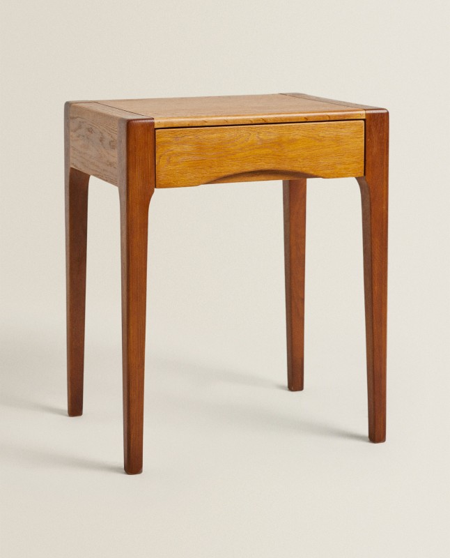 Bedside table with drawer, made of 100% oak wood. No assembly required.