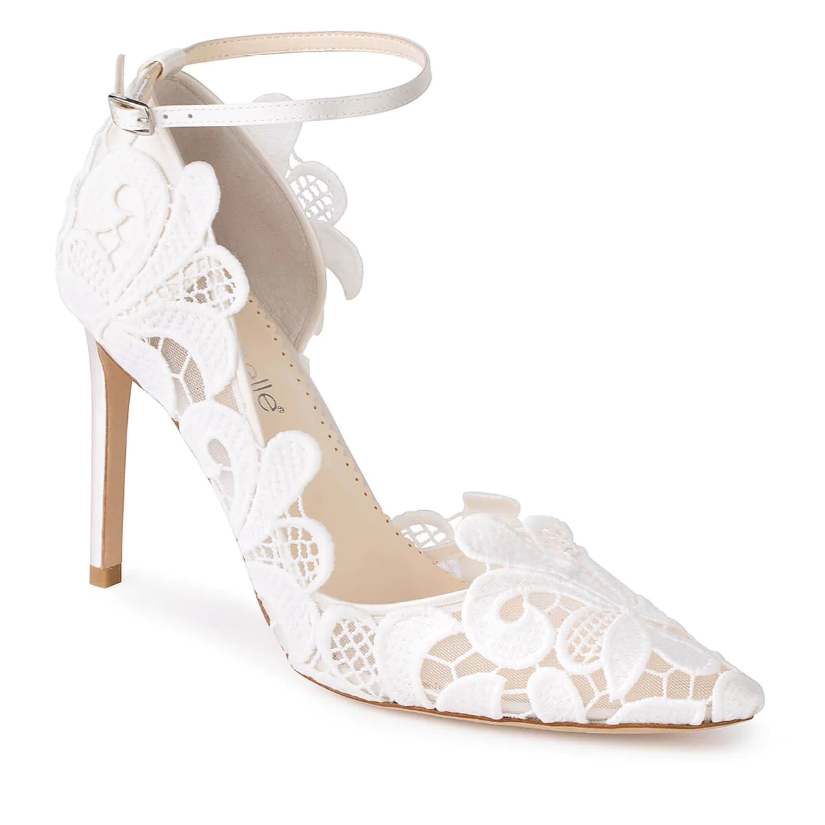 Inspired by the elegance of Swan Lake, these lace wedding heels embody a ballerina's finesse. Unforgettable intricate lace embroidery forms gentle pirouettes across these lace pumps while our signature padding provides that featherlight feeling like you are floating on water.