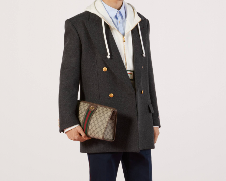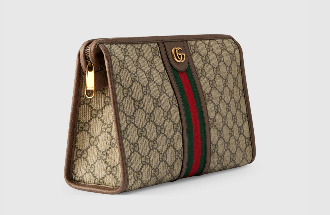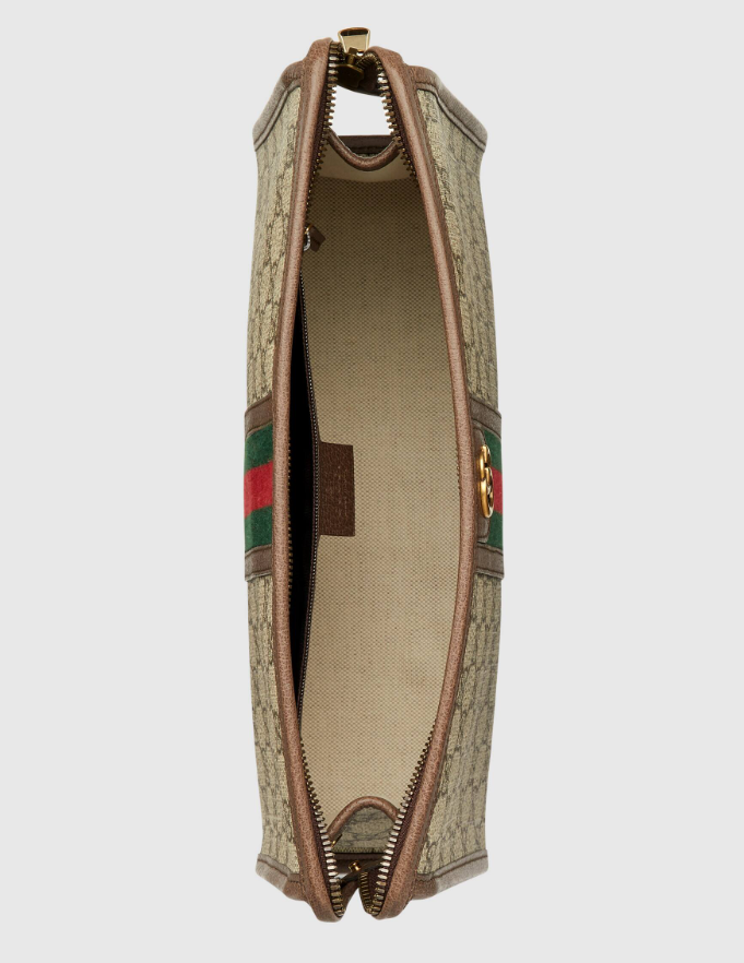 This zippered clutch is crafted from GG Supreme canvas and adorned with two iconic and recognizable elements of the brand - the red and green striped webbing and the double G. The Ophidia collection continues to evolve with new looks and styles for the Spring 2020 collection.
