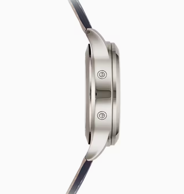 This new self-winding model with its original and highly recognizable aesthetic is offered in a white gold version, Reference 5924G-001, with a sunburst blue-gray dial and a grained navy blue calfskin strap.