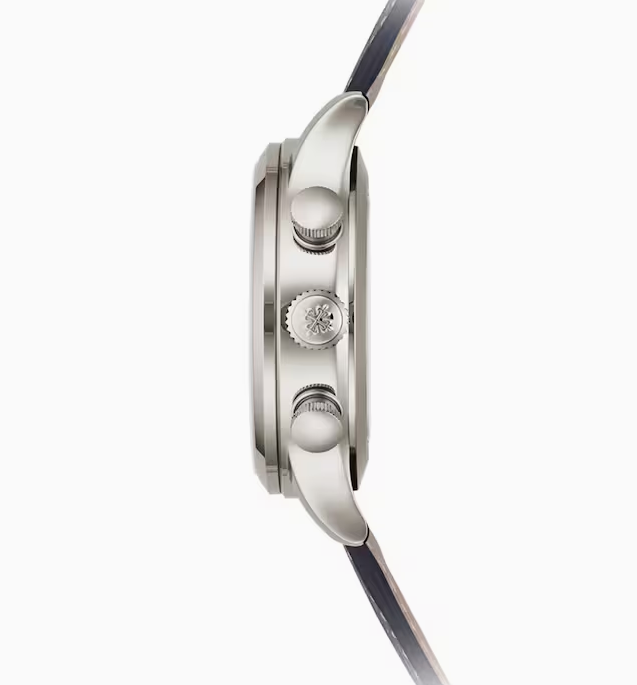 Patek Philippe is introducing the first chronograph model in its Pilot style watch line, combined with a Travel Time function and a date indication by hand coupled with local time.