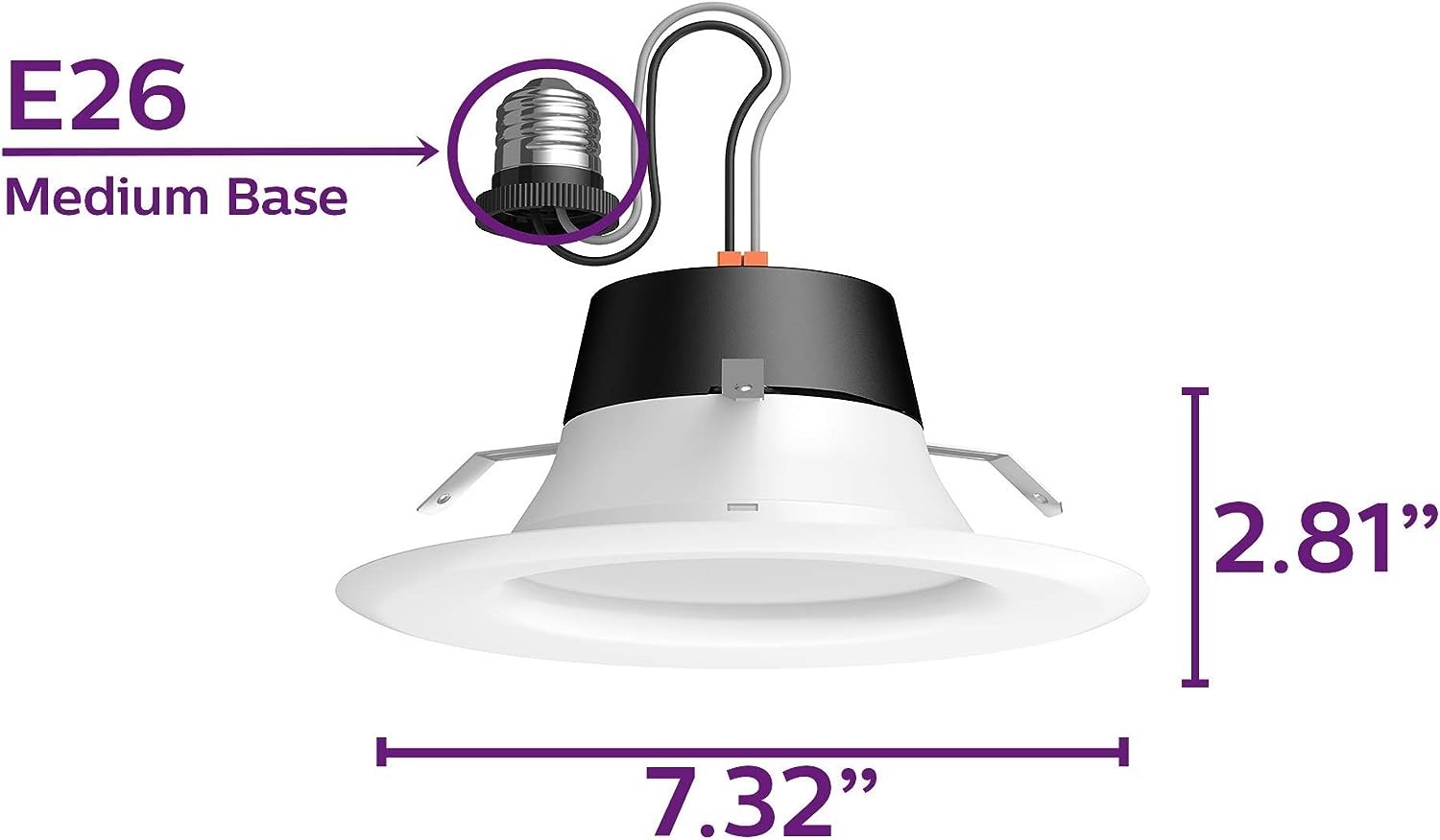 COMPATIBILITY: These Philips LED light bulbs fit in E26 medium screw bases; Not compatible with Philips HUE products; Philips LED myLiving Dimmable 5 inch or 6 inch Downlight Recessed Lighting Fixtures are for non connected use only