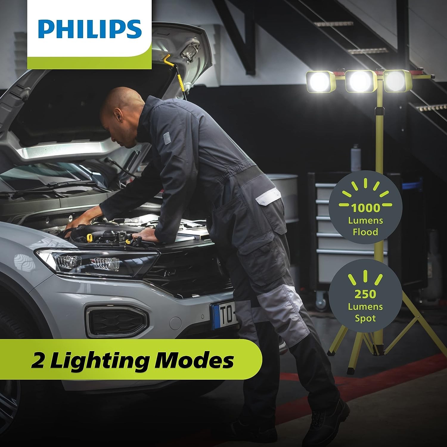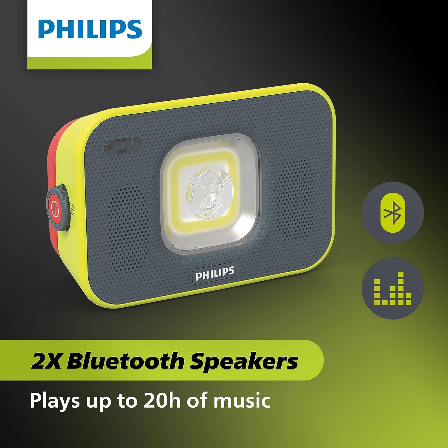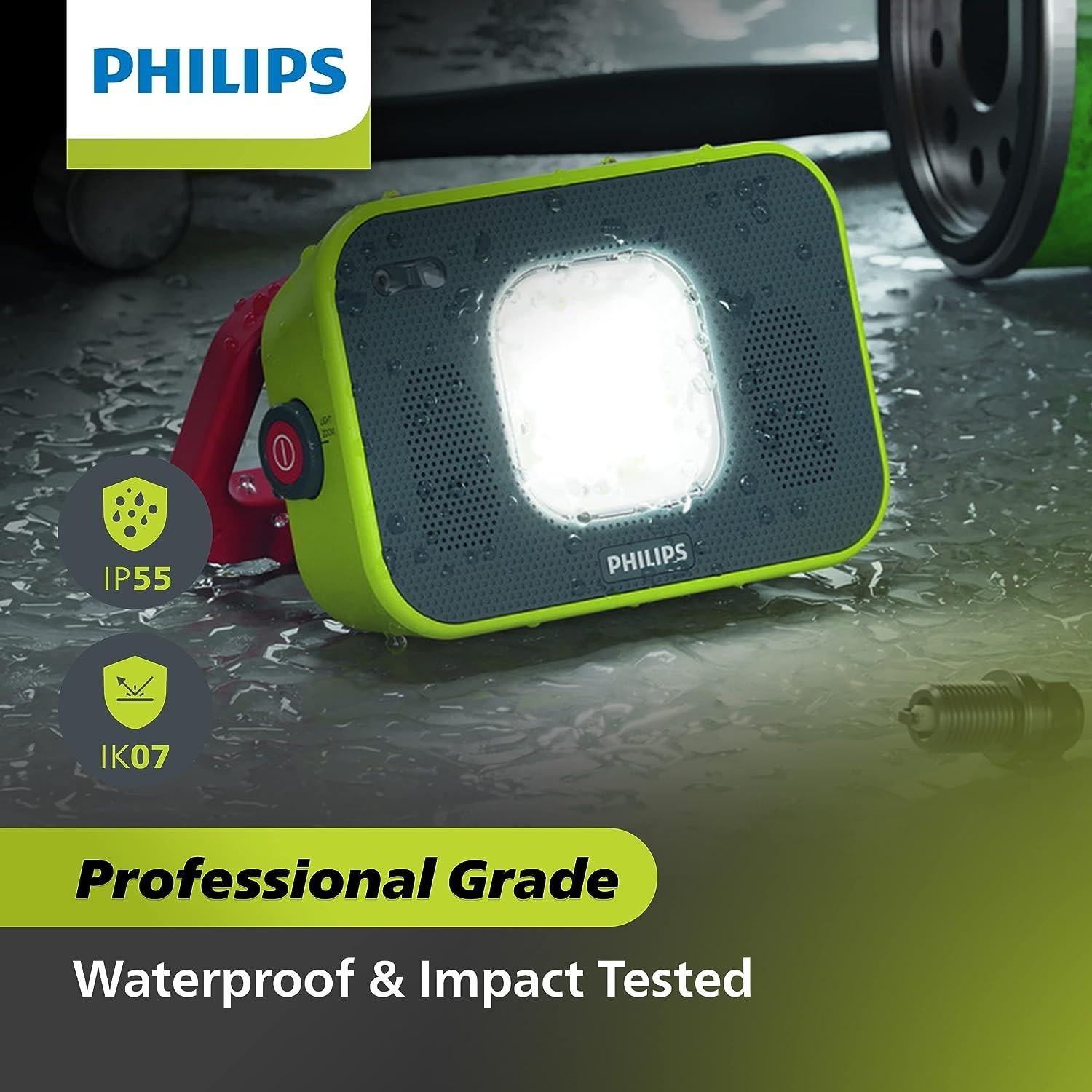 Philips Xperion 6000 Flood Audio Rechargeable LED Work Light Bluetooth Speakers, 1000 Lumen Professional Smart Zoom Flood Light with Magnetic Base for Mechanics, Construction, Camping | X60FLAUX1