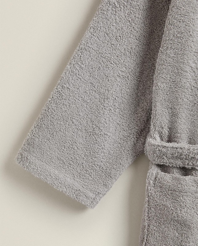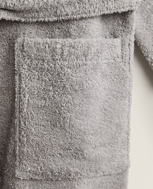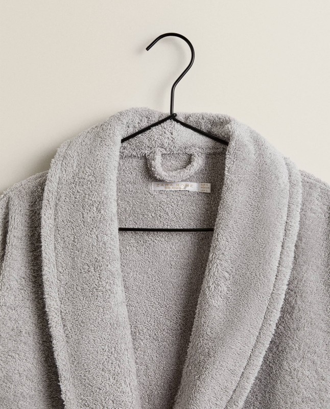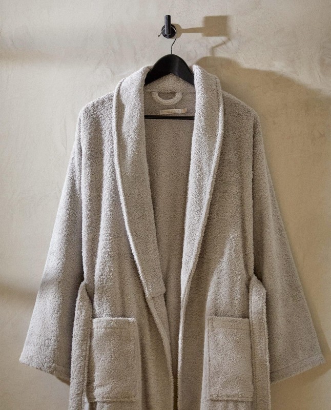 Unisex bathrobe made of extra absorbent cotton, verresistant, no hood, with pockets and a cord around the waist.