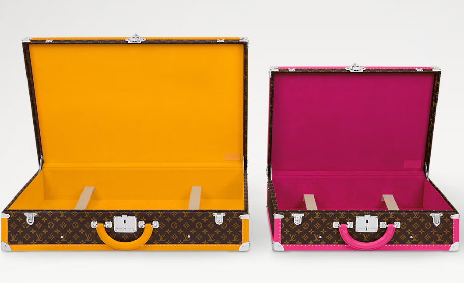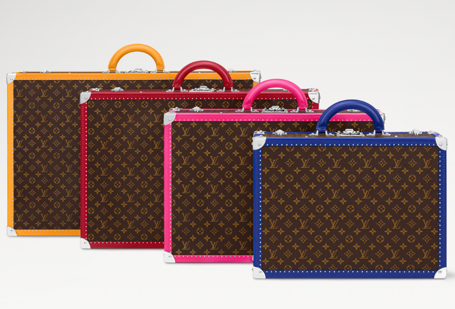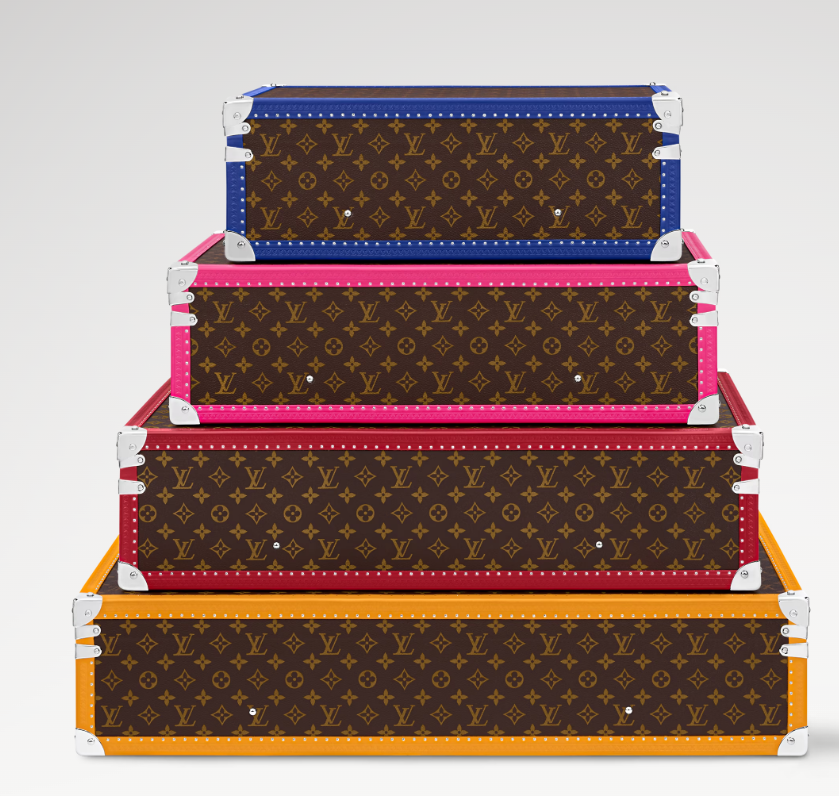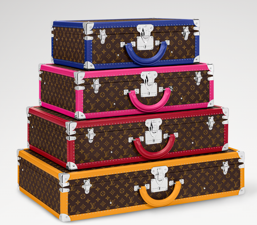 The Pyramide Bisten 50 - 80 is a set of four Hardsided suitcases, made from Monogram canvas and adorned with brightly colored leather trim as part of the LV Colormania collection. The shape of the cases and the silver-toned hardware evoke the House’s trunkmaking legacy. The color of the inside linings matches that of the leather trim for each case.