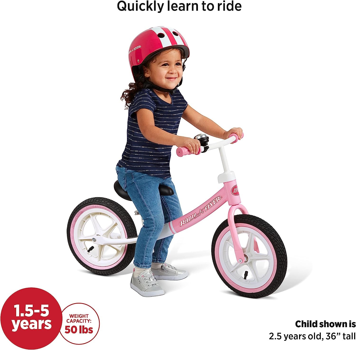 Radio Flyer Air Ride Balance Bike, Toddler Bike, Ages 1.5-5 Pink , White