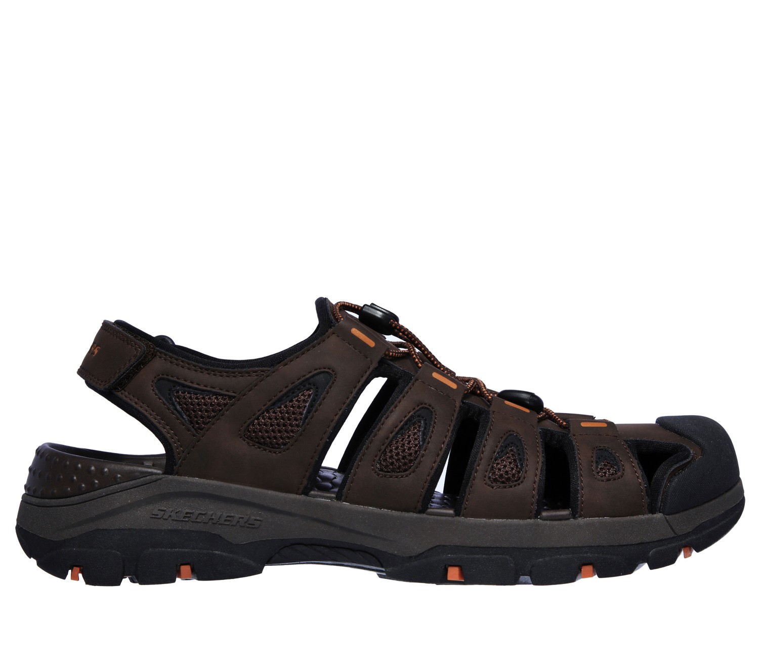 Get right into your adventures in comfort with Skechers Relaxed Fit®: Tresmen - Outseen. Durable synthetic upper in a slip-on closed toe river-style fisherman sandal with Luxe Foam® cushioned footbed.