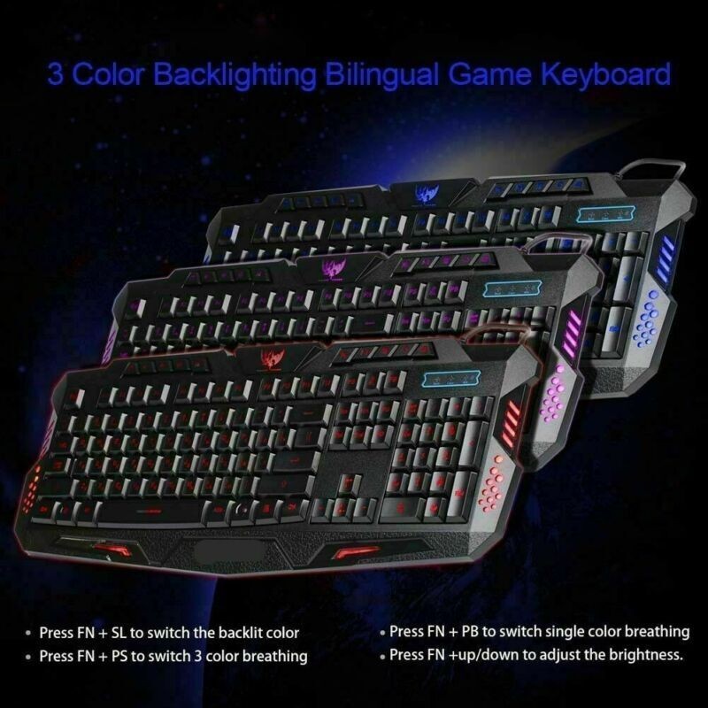 RGB Gaming Mechanical Keyboard + Mouse, Wired Membrane Keys Led Backlit 3 Color