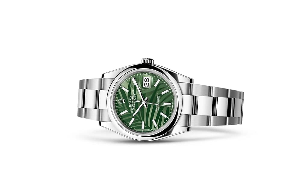 With its expertise and state-of-the-art equipment, Rolex continues to develop and create new watch faces that bring a vibrant color to the appearance of its watches. The Rolex watchmakers have reinterpreted the brand's iconic and unique sunray-effect dial by engraving a new pattern with a femtosecond laser, which makes use of extremely short electromagnetic pulses to leave its mark on the dial. The palm leaf motif is inspired by lush vegetation, with its layers of palm leaves creating a visual effect of light and shadow.