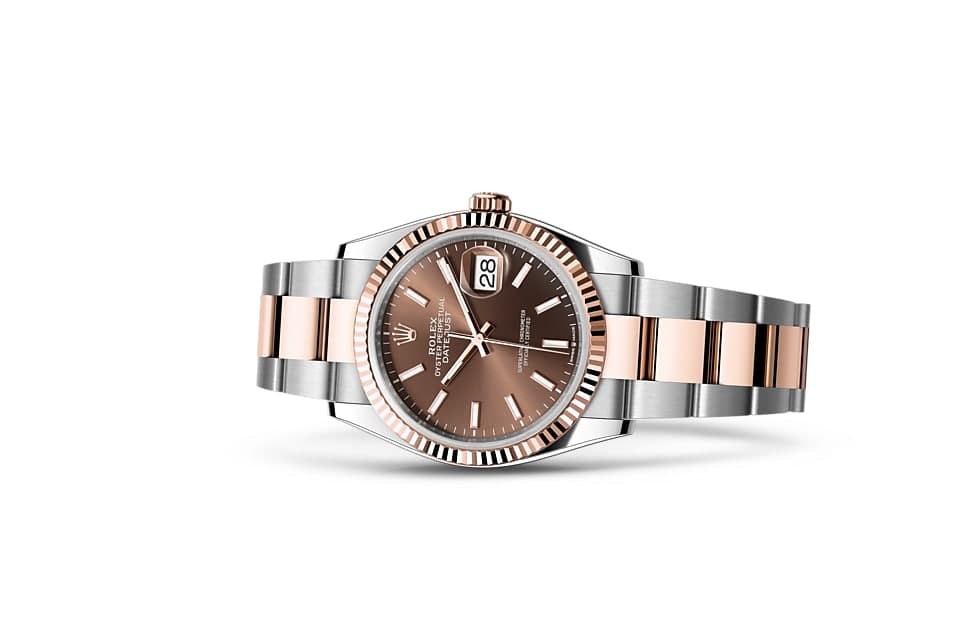 The Rolex triangle pattern is a characteristic feature of the brand's watches. Initially, the OYSTER bezel's triangular pitches served a practical purpose, helping to secure the bezel to the case by screwing it down and ensuring that the watch was waterproof. The same was true of the pitched caseback, which was screwed into place with a special Rolex tool. Later, the triangular pitched pattern evolved into an aesthetic design element that has become an iconic feature of Rolex. Today, it is a characteristic feature of the brand's watches, and in the case of the Datejust 36, the bezel is made of gold.