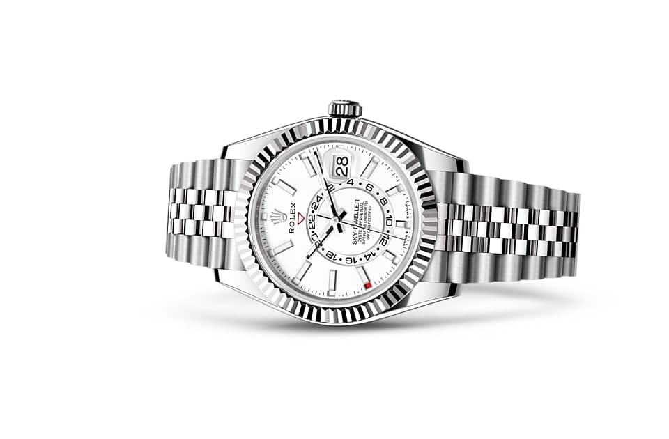 The Rolex triangle pattern is a characteristic feature of the brand's watches. Initially, the OYSTER bezel's triangular pitches served a practical purpose, helping to secure the bezel to the case by screwing it down and ensuring that the watch was water-resistant. The same was true of the pitched caseback, which was screwed into place with a special Rolex tool. Later, the triangular pitched pattern evolved into an aesthetic design element that has become an iconic feature of Rolex. Today, it is a characteristic feature of the brand's watches, often used on gold models, and the Sky-Dweller's Ring Command system, which enables interaction between the rotating bezel, the winding crown and the movement, makes it easy, fast and reliable for the wearer to select and adjust each of the watch's functions one by one.