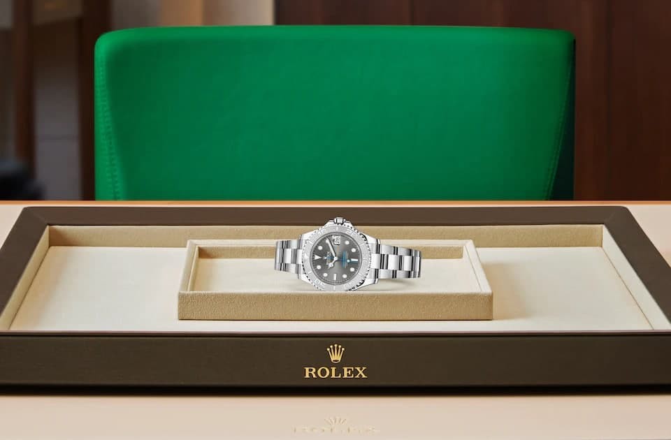 Many Rolex watches are now available in steel platinum, the famous material combining stainless steel and gold, white gold or eternal rose gold, and for the Yacht-Master, steel platinum. The case and bracelet of a steel watch in platinum are made of sturdy OYSTER steel, while the bezel in platinum, with its silver-white coloring and brilliant shine, is a luxury.