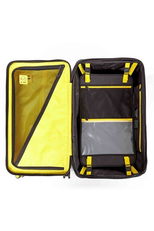 - DIY customization kit that allows you to interchange components including the logo, trolley handle and wheel caps