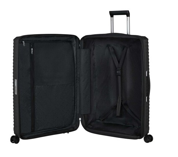 Meet Upscape, a lightweight statement made from polypropylene. Enjoy carefree traveling with multiple features like expandable, suspension wheels, a double tube pull handle and an integrated TSA lock with USB A & C port on the cabin case. The featured and washable interior made from recycled PET plastic bottles is providing just that little extra. The practical interior includes a fixed divider with two pockets and packing straps.