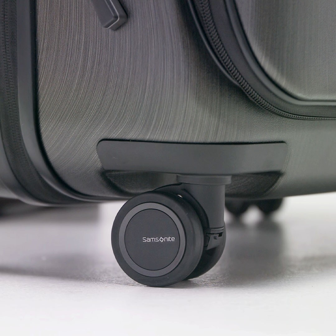 Introducing a luggage that cuts no corners; the Unimax. Incorporating timeless design and constructive details, Unimax features the award-winning Samsonite Minimalism Design Philosophy that integrates the logo bar & corner protector. The metal brushed finishing prevents scratch visibility. For the detailed conscious traveller who leaves nothing unpacked, there’s no other luggage like the Unimax.