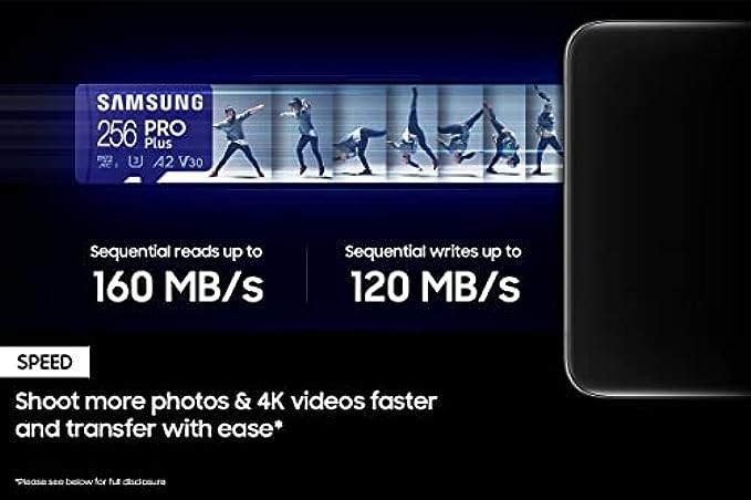 SAMSUNG PRO Plus + Adapter 256GB microSDXC Up to 160MB/s UHS-I, U3, A2, V30, Full HD & 4K UHD Memory Card for Android Smartphones, Tablets, Go Pro and DJI Drone (MB-MD256KA/AM)