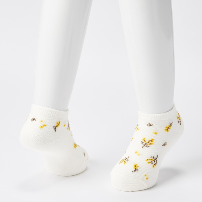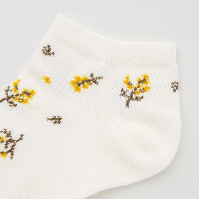 - 3-pair set of cute mimosa pattern, solid color, and soft frill socks.