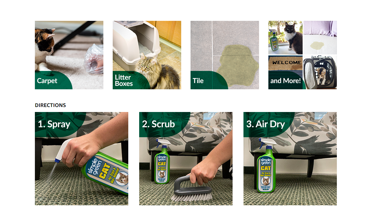 Permanently eliminates tough stains and unpleasant odors from urine, feces, vomit, scent markings, dirt, blood and more