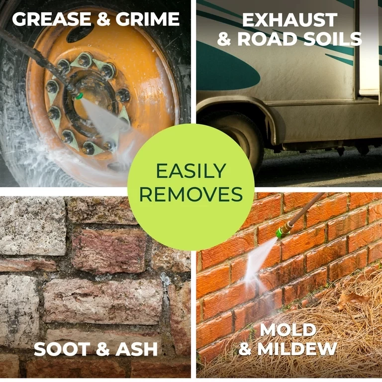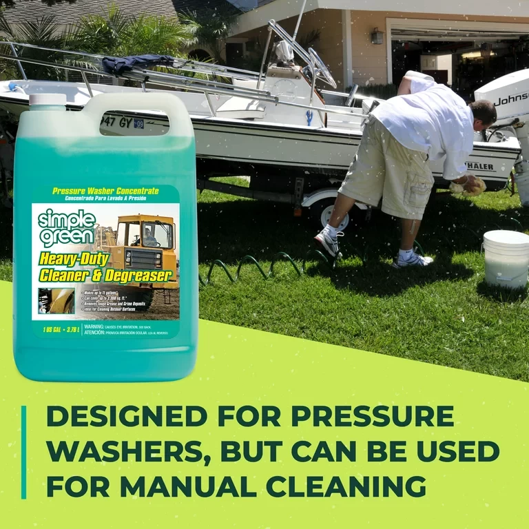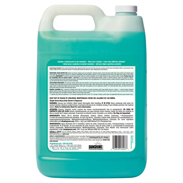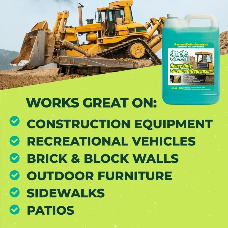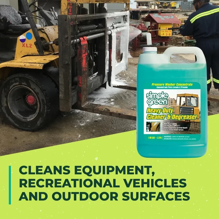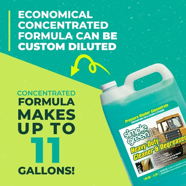Simple Green Heavy-Duty Cleaner is a powerful, specially formulated pressure washing concentrate designed to remove even the toughest grime. This pro-grade formula was developed primarily to be used with pressure washing systems, but can also be used for manual cleaning applications. It easily lifts away oils, dirt, grease, soot and ash, exhaust, pollen, mold and mildew stains, road tar, and other tough soils. Cleans and brightens outdoor surfaces and equipment.