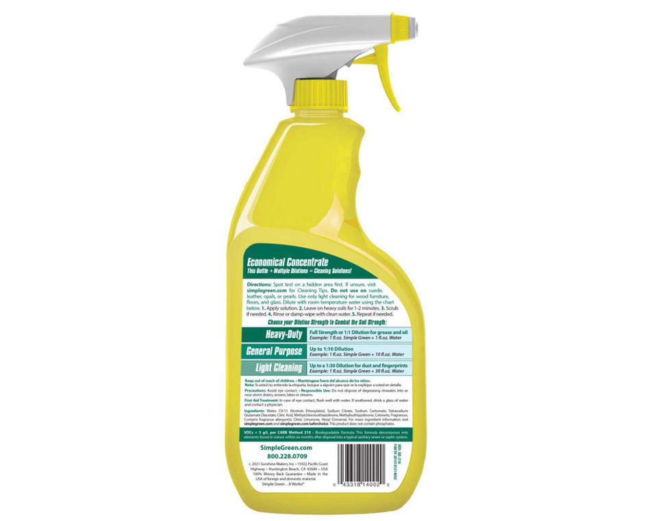 General Purpose – Up to 1:10 Dilution (Example: 1 oz. Simple Green + 1 cup water)