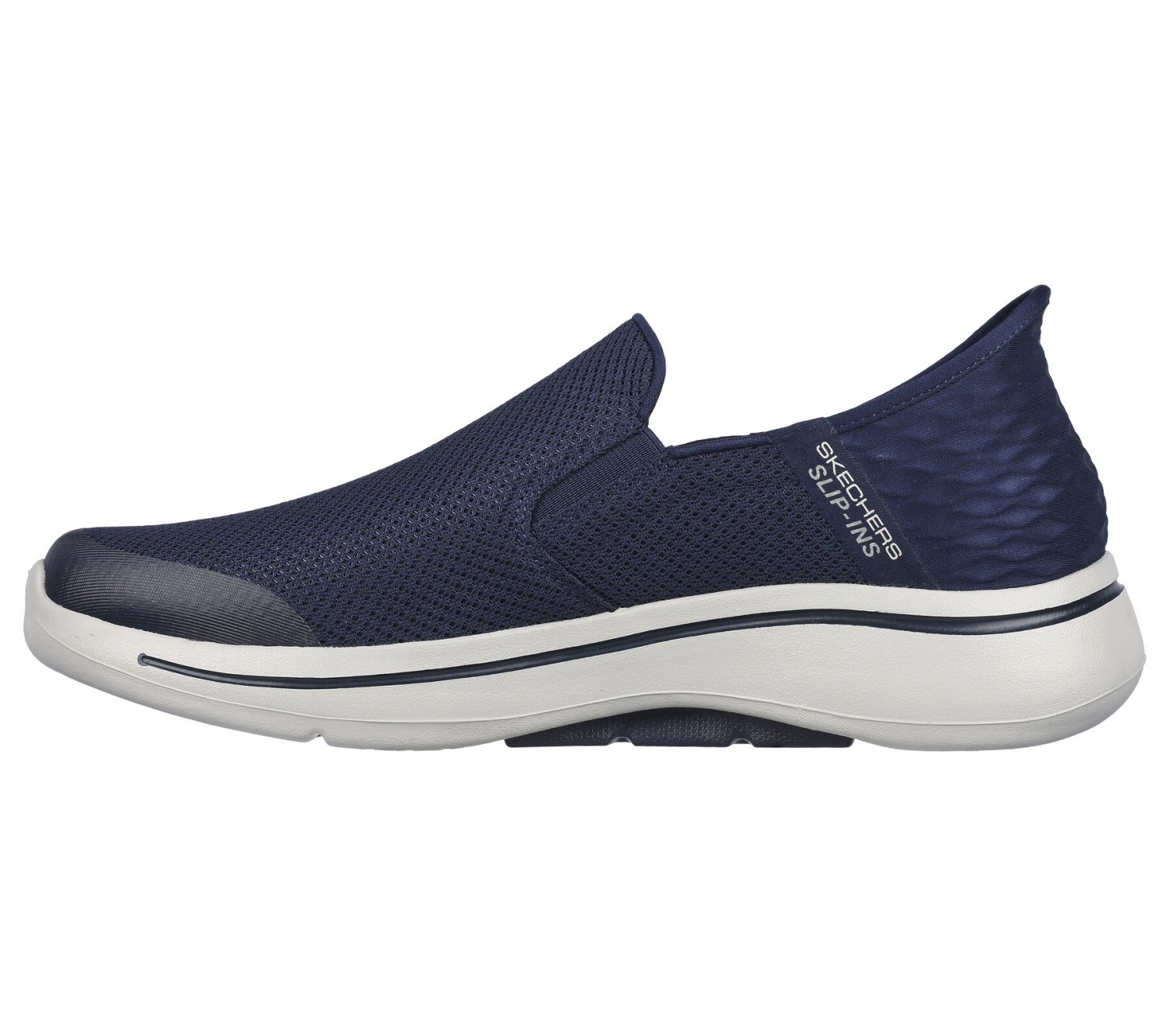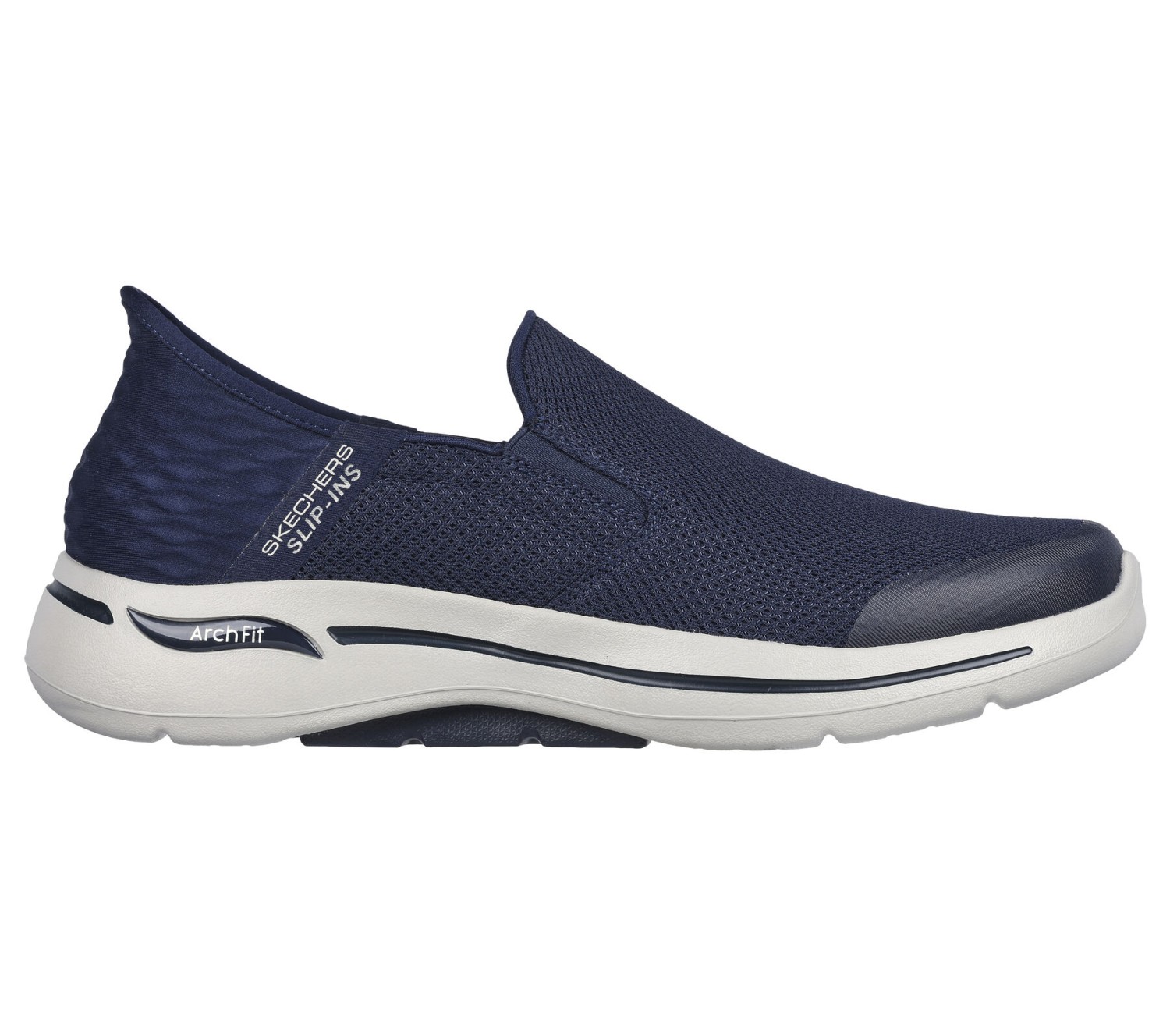 Head out on your walk in ultimate support and ease wearing Skechers Hands Free Slip-ins™: GO WALK® Arch Fit® - Hands Free. This TOUCHLESS FIT™ style features an engineered knit upper with a lightweight ULTRA GO® cushioned midsole, our exclusive Heel Pillow™, a cushioned Skechers Air-Cooled Memory Foam® insole, plus removable Arch Fit® insole support.