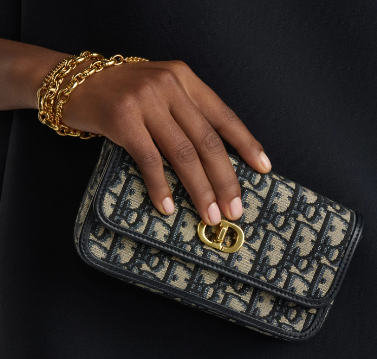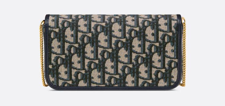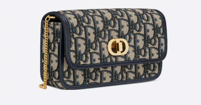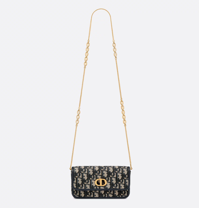 New for Summer 2025, the Miss Caro pouch with chain is practical and elegant. Crafted in blue Dior Oblique jacquard with tonal leather detailing, it features a flap with an antique gold-finish metal CD twist clasp inspired by the seal of a Christian Dior perfume bottle, opening to reveal a compartment that will accommodate all the essentials. The chain allows the small accessory to be carried comfortably by hand, worn over the shoulder or crossbody as an ideal daily pouch.