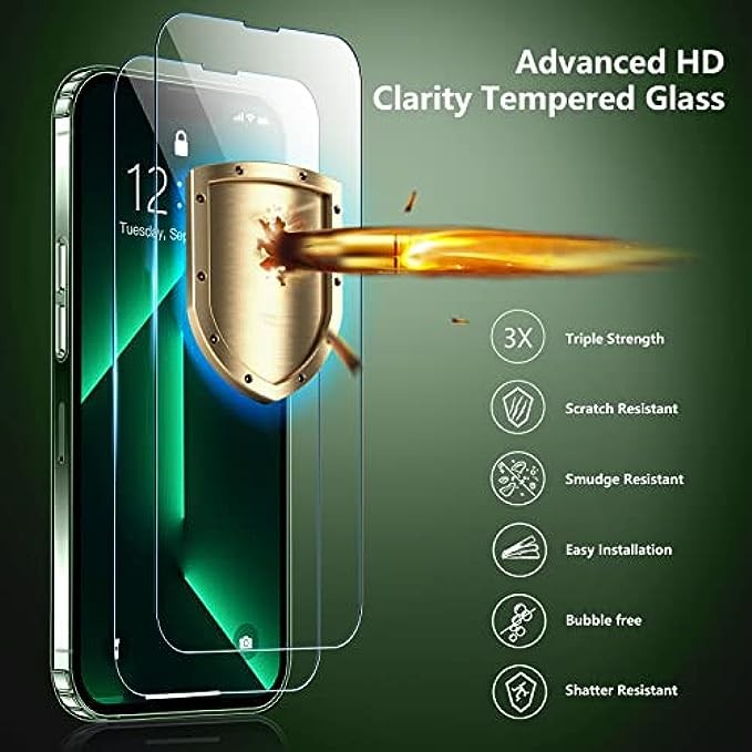 [2 件屏幕保护膜和 2 件相机镜头保护膜]高品质 9H 钢化玻璃保护您的 iPhone 13 pro max 屏幕免遭刮擦和破碎,但超薄、舒适和灵敏的触感让您感觉屏幕上什么都没有。提供 2 件钢化玻璃相机镜头可以100%保护相机且不会影响照片质量的保护膜。