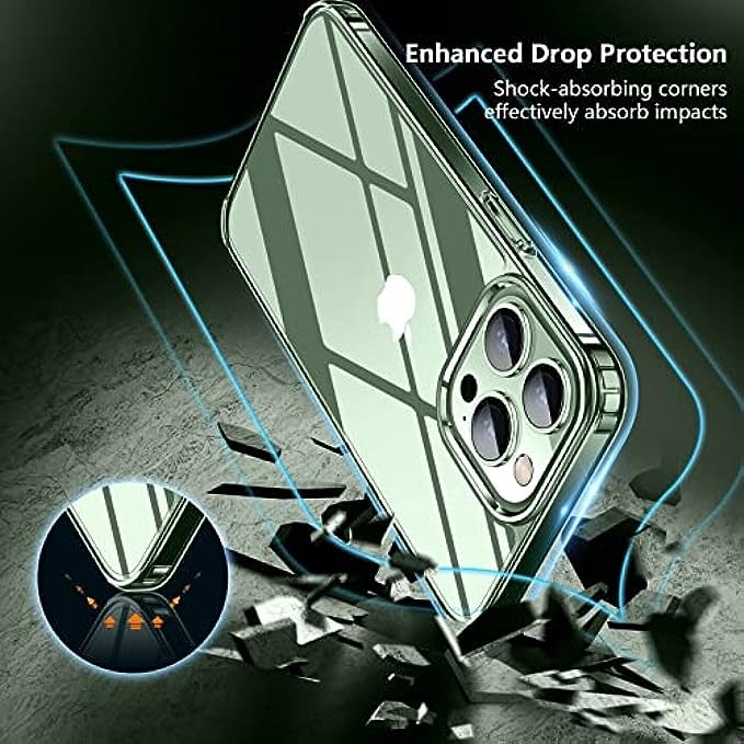 [军用级保护] 经过跌落测试认证,具有 4 个内置角气囊来吸收冲击力,可以防止您的 iPhone 13 pro max 意外跌落、碰撞和刮擦。