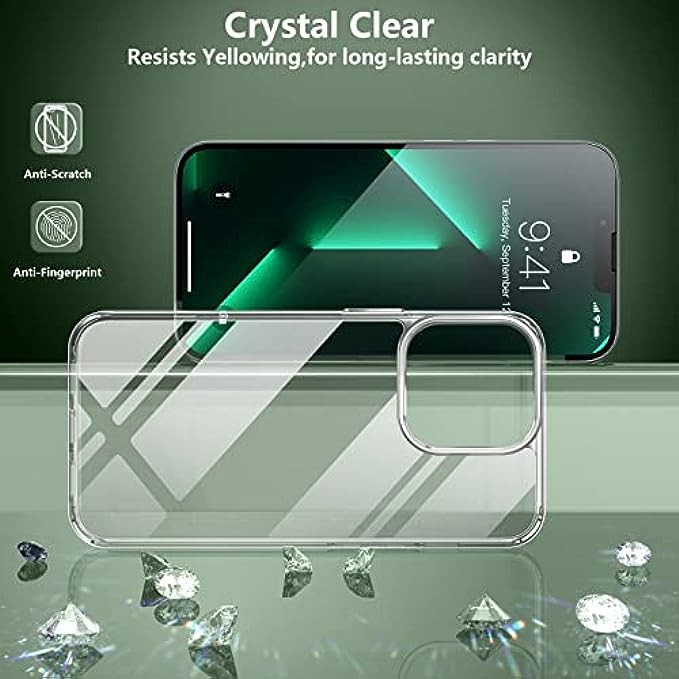 [晶莹剔透,不黄变,支持无线充电]专为 iPhone 13 pro max 手机壳设计的德国拜耳材料和抗氧化涂层,不与紫外线发生反应,不会随着时间的推移而黄变,提供持久的清晰度,展现原始之美你的 iPhone 绝对支持无线充电。