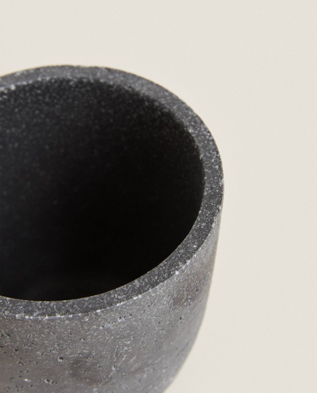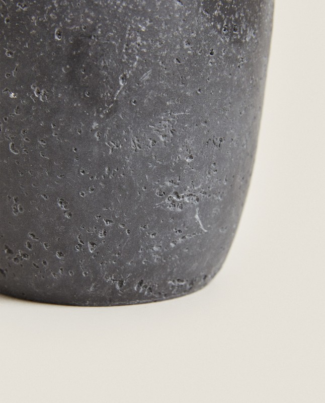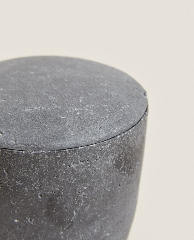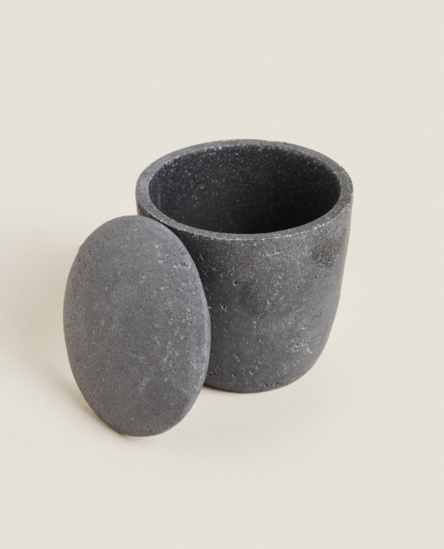 Jar with lid made of resin featuring simple lines and a dark stone grey finish.