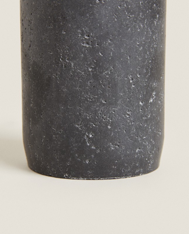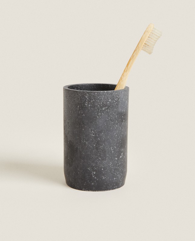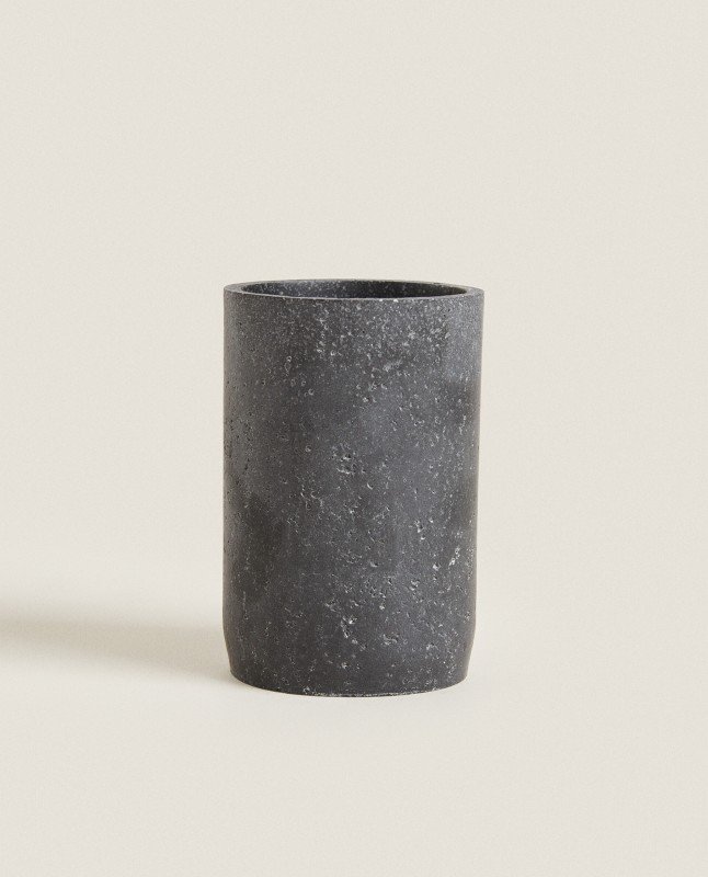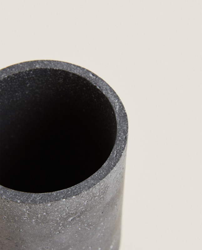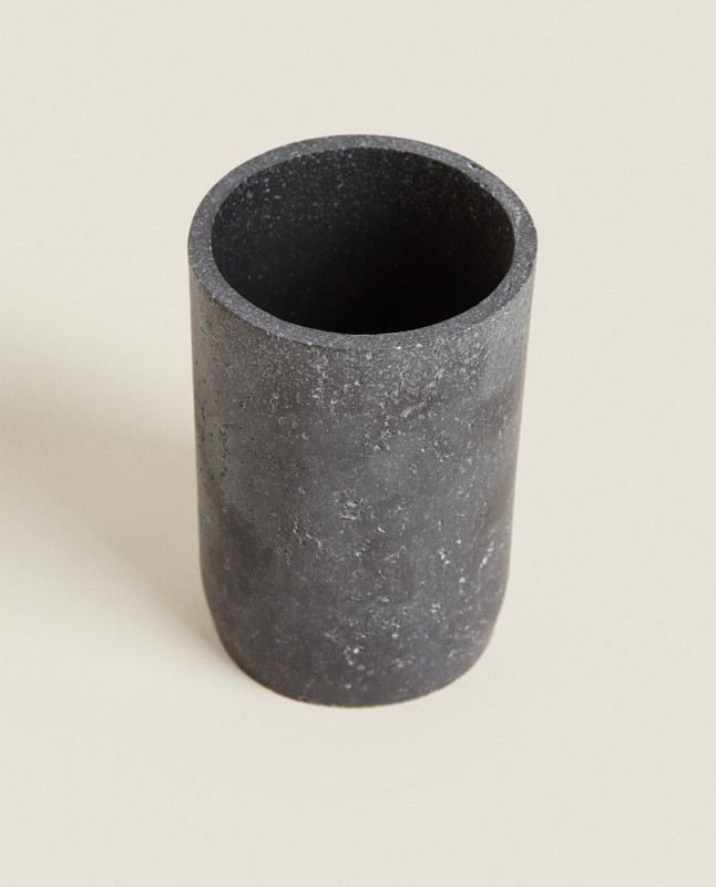 Tumbler made of resin featuring simple lines and a dark stone grey finish.