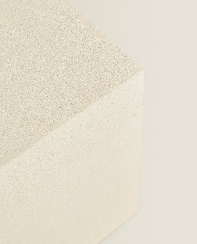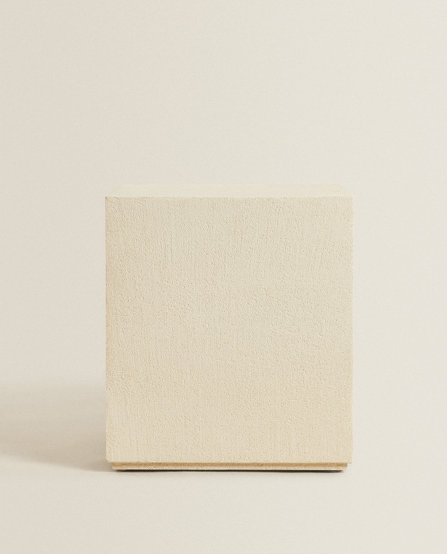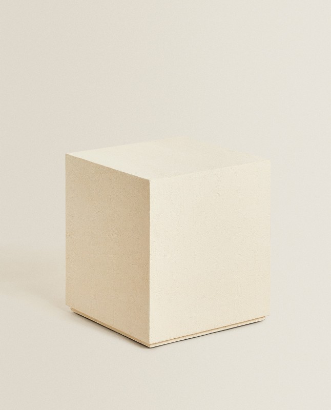Cube table with a cement finish.