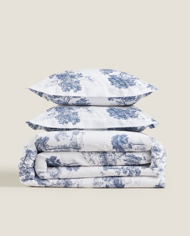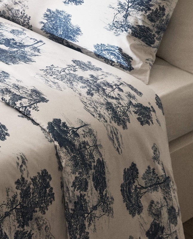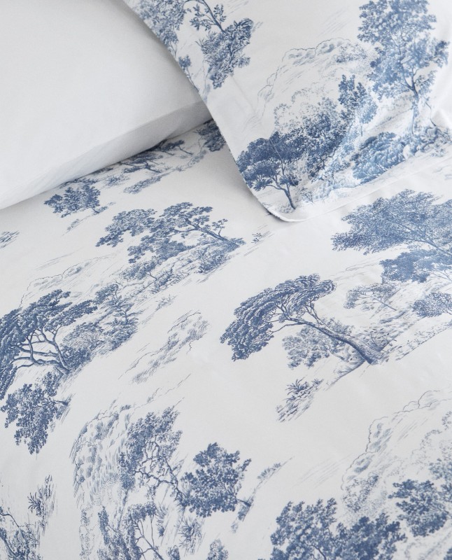 Duvet cover in 200-thread-count cotton percale with a Toile de Jouy design.