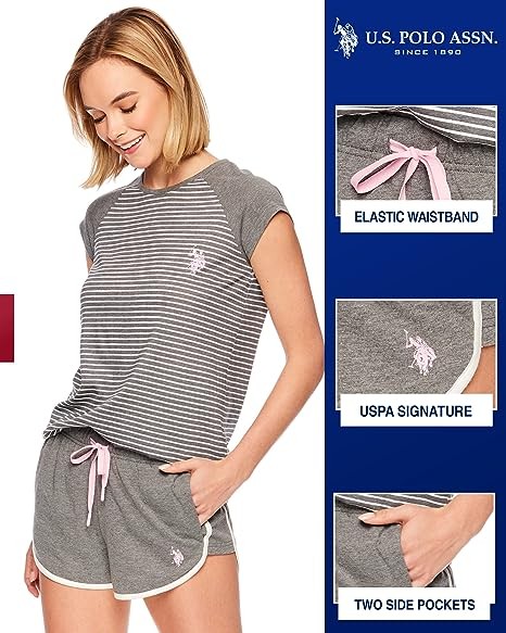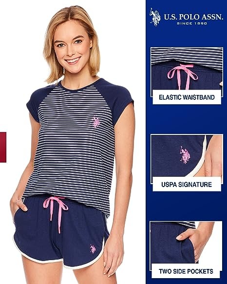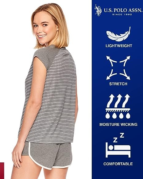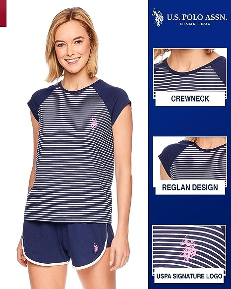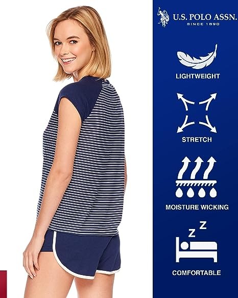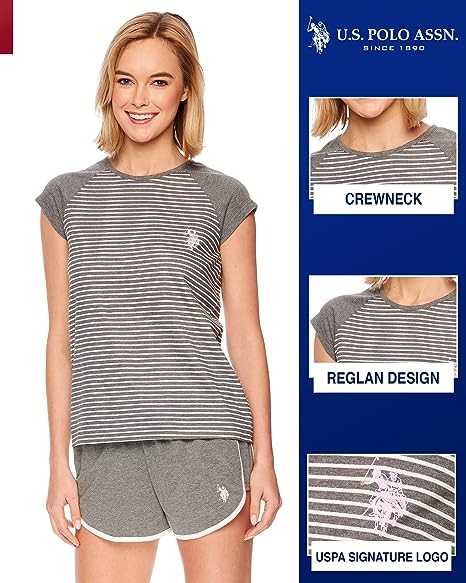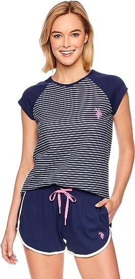 Striped PJ Top: Colorblocked sleep top sports solid cap sleeves and a mini striped print on the torso. Contrast U.S. Polo Assn. logo accents the chest