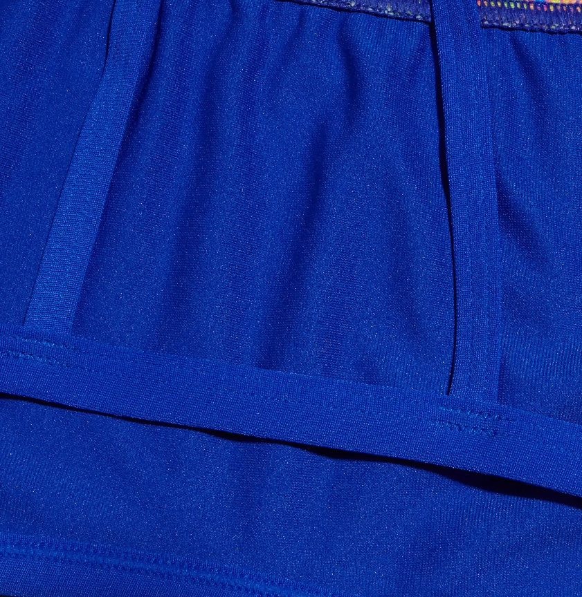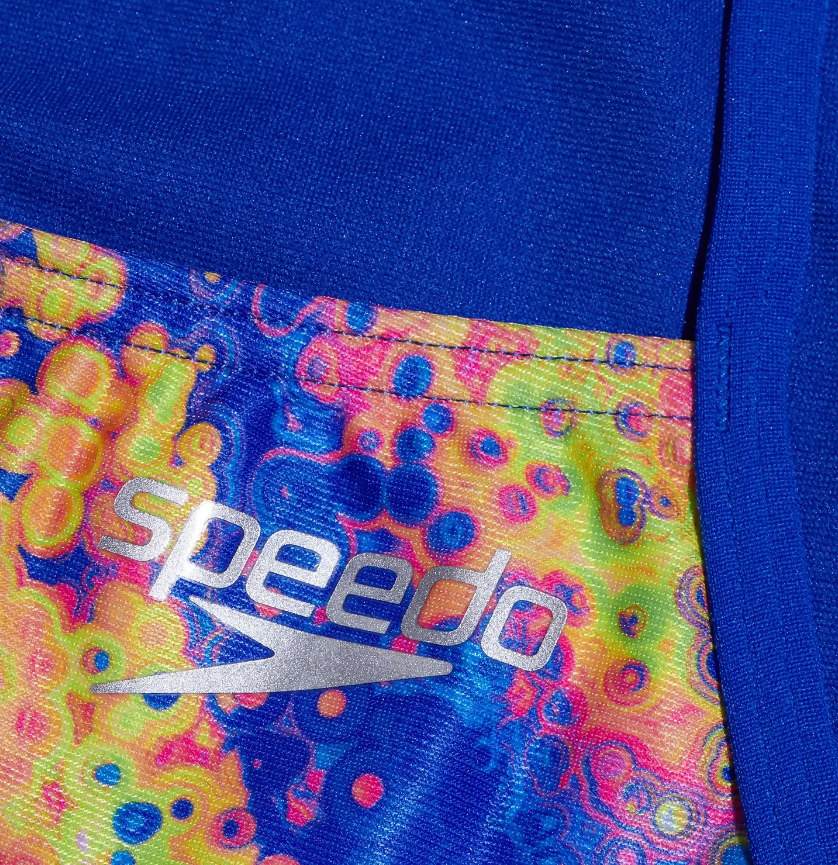 Long drill sets are no match for this stylish Cross-Back Crop Top, which features our eye-catching ‘Cosmic Distortion’ print in psychedelic colours. Helping you wave bye-bye to boring, the thin crossback straps sit between your shoulder blades, allowing great freedom of movement so you can train hard and feel great. Fully lined in True Cobalt for comfort and modesty. Made from our durable ECO Endurance+ fabric, it's quick-drying and 100% chlorine resistant. Plus, one of the yarns in this fabric is made from 100% post-consumer waste, such as recycled plastic bottles.