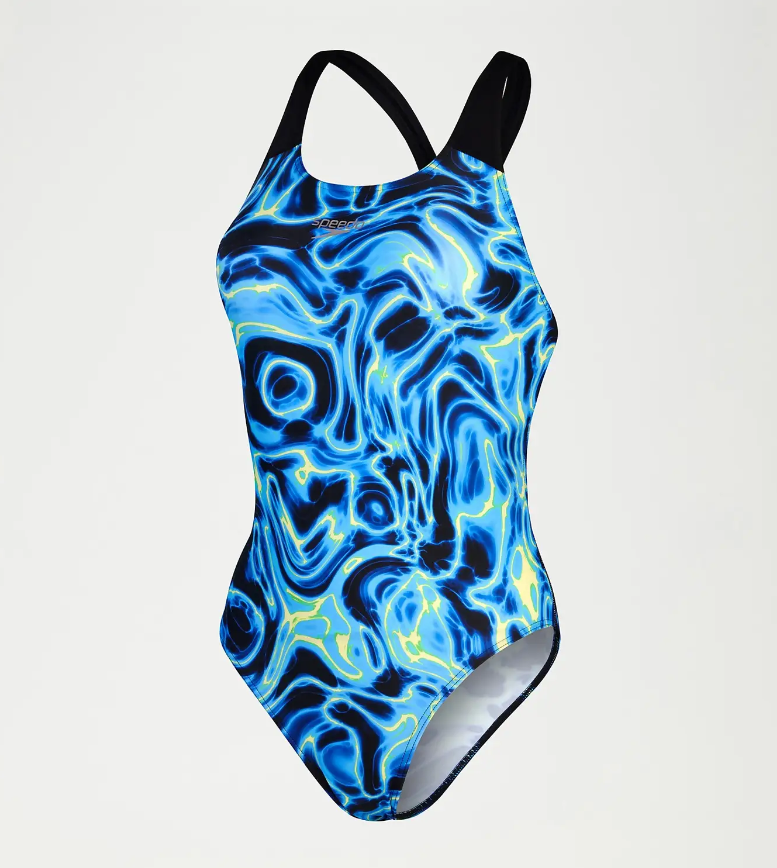 Feel energised as you as you tick off your lengths in training wearing this stylish Powerback swimsuit, featuring a bold X-ray-style print in tones of blue, green and yellow. Ideal for all your swim sessions, the powerback style includes an open back and narrow straps to aid shoulder movement and flexibility on every stroke. The suit is also fully front lined for comfort and modesty in and out of the water. Ideal for frequent pool sessions, our ECO EnduraFlex fabric offers higher chlorine resistance than standard swimwear fabrics and fits like new for longer with CREORA® HighClo™. In addition, nylon yarns in the EnduraFlex fabric are made from 100% pre-consumer waste, such as waste fabric from factories.