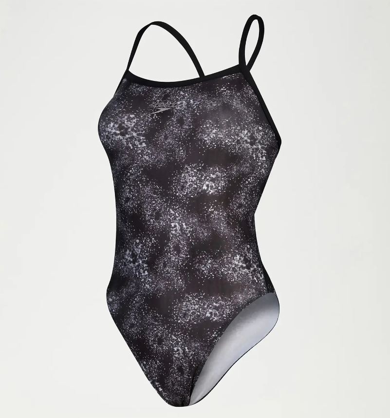 Emerge from the deep (end) with a new PB, wearing this sleek Turnback swimsuit featuring our other-worldly, ocean-inspired print in stunning black and white. Covering all your training needs, the suit’s thin-strap design allows unrestricted shoulder movement. At the same time, the high-cut leg provides maximum flexibility during your swim. The suit is fully gueest-lined for comfort and modesty. Made from our durable ECO Endurance+ fabric, it's quick-drying and 100% chlorine resistant. Plus, one of the yarns in this fabric is made from 100% post-consumer waste, such as recycled plastic bottles.