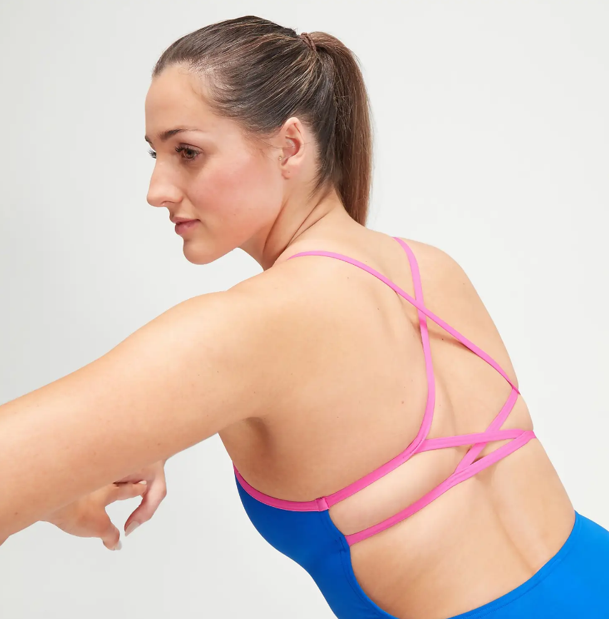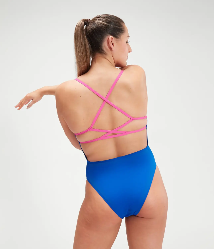 Power through training in this bold cobalt blue Lattice-Back swimsuit with contrasting candy pink straps. We’re all about the details with this stunning Lattice-Back style, which features an intricate back design and a comfortable rubber under-bust band, which provides light support as you fly through training. Front lined in True Cobalt for comfort and modesty, it includes an extra-high leg for maximum freedom of movement across all strokes. Made from our durable ECO Endurance+ fabric, it's quick-drying and 100% chlorine resistant. Plus, one of the yarns in this fabric is made from 100% post-consumer waste, such as recycled plastic bottles.