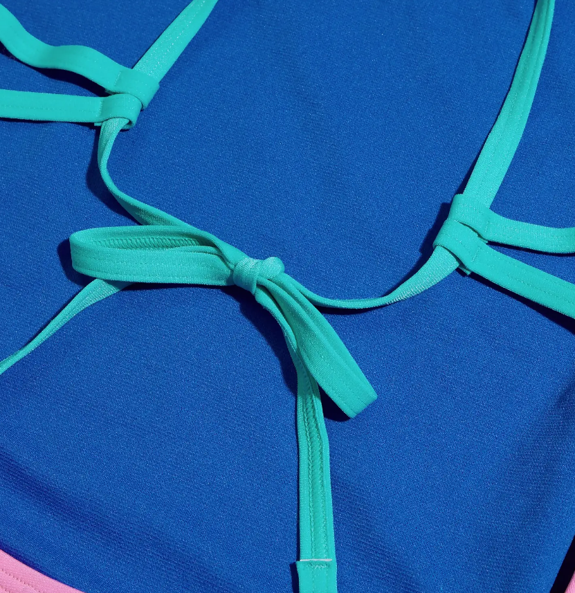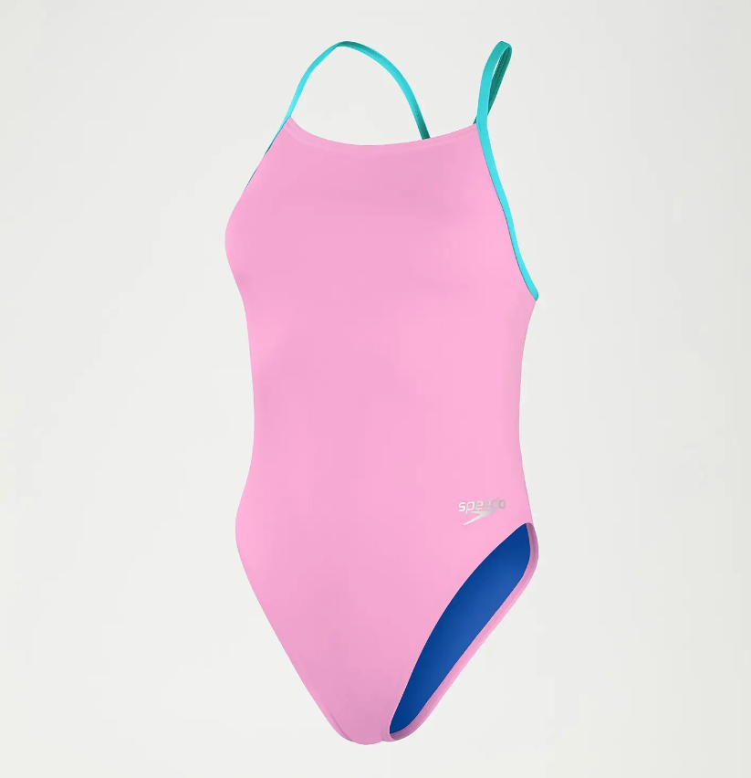 Radiate confidence as you fly through training wearing this stunning candy pink Tie-back swimsuit with contrasting turquoise straps. Fully lined in True Cobalt for comfort and modesty, it includes a fully adjustable tie-back and an ultra-high leg for maximum flexibility, so you can rock your sets without feeling held back. Made from our durable ECO Endurance+ fabric, it's quick-drying and 100% chlorine resistant. Plus, one of the yarns in this fabric is made from 100% post-consumer waste, such as recycled plastic bottles.