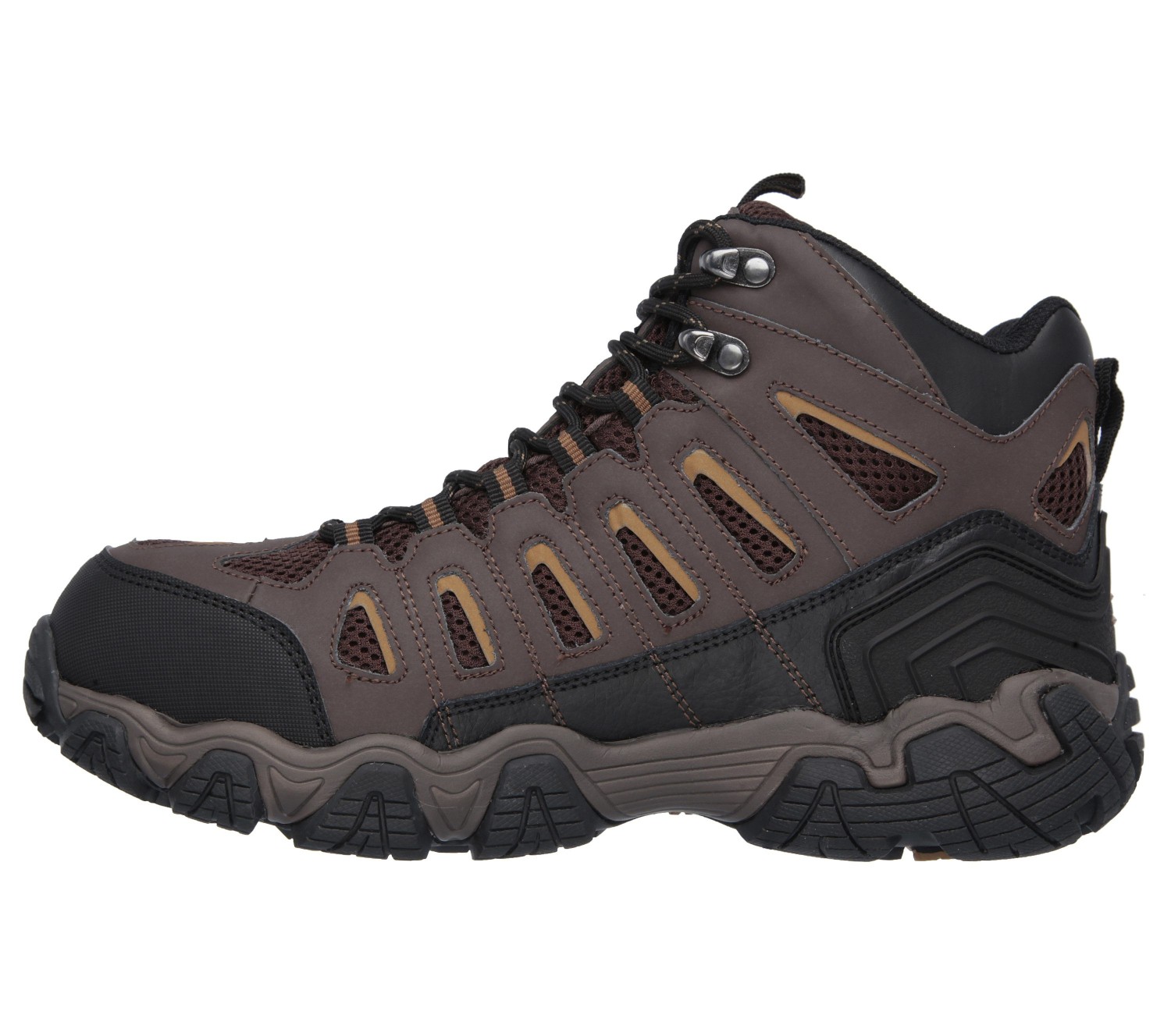 Smooth action leather, synthetic and mesh upper with a lace-up front